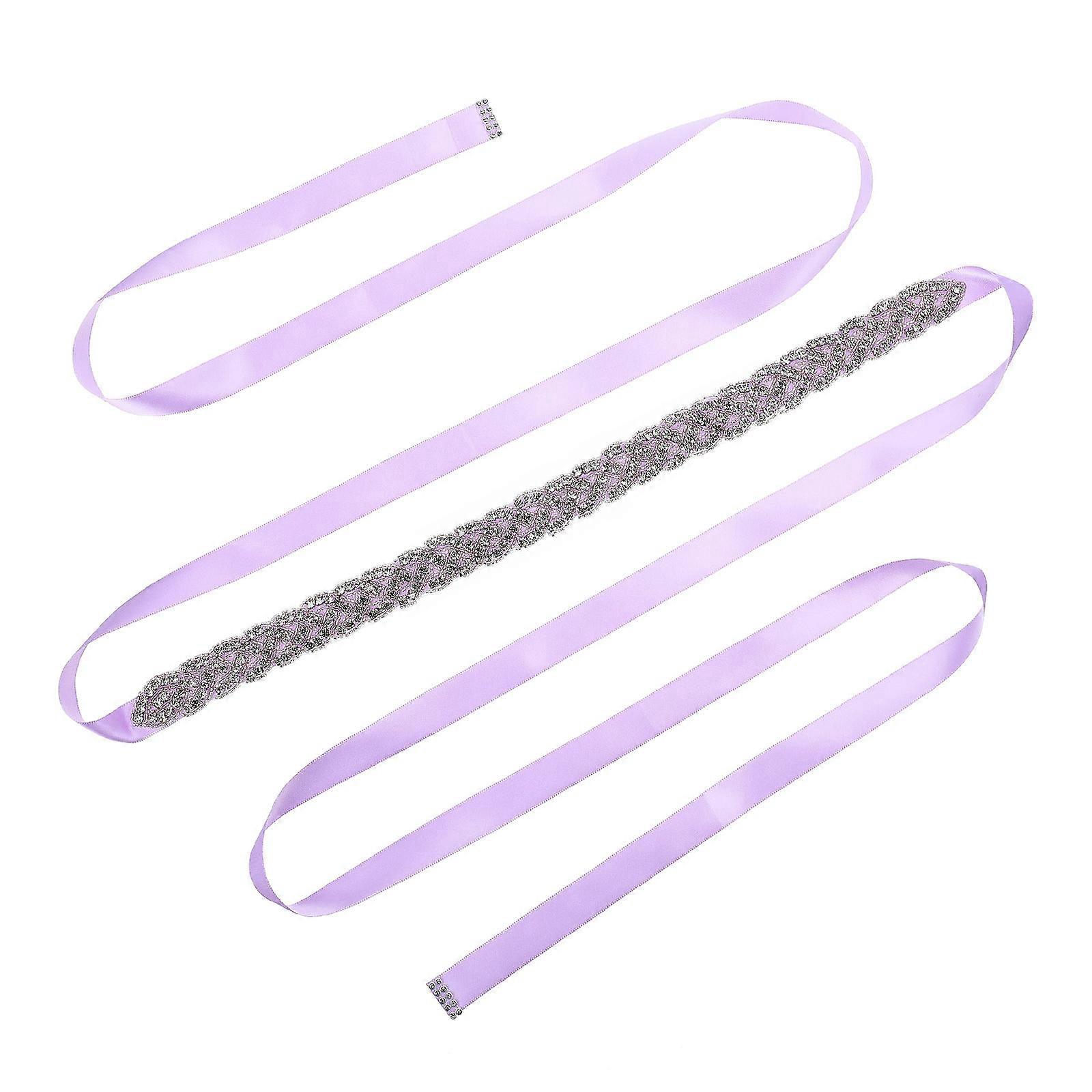 Rhinestone Wedding Dress Belt for Bride Stylish Evening Waist Band Lavender