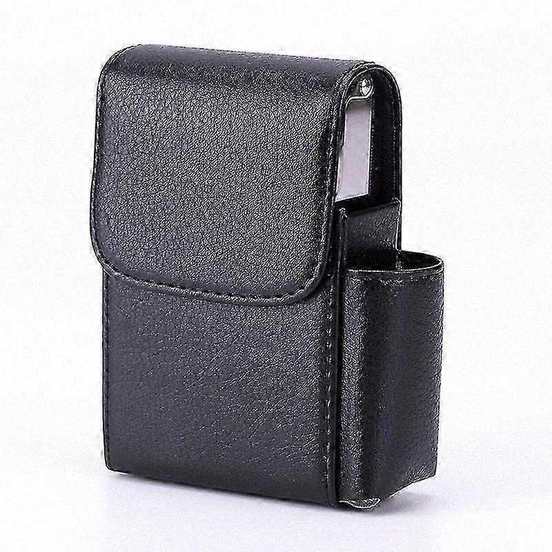 Men's Stainless Steel Cigarette Case with PU Leather Sliding Box, Lighter Holder & Belt Loop