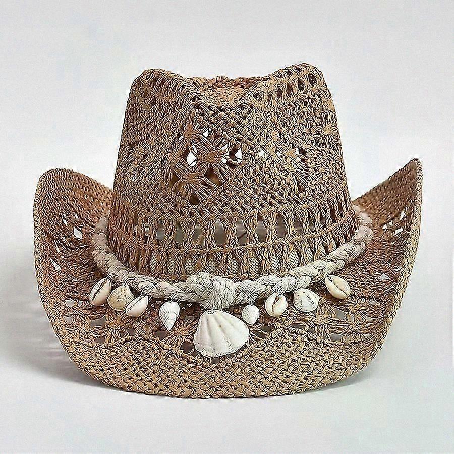 Women's Summer Hand Woven Straw Hat with Shell Decoration for Beach Holiday Sun Protection