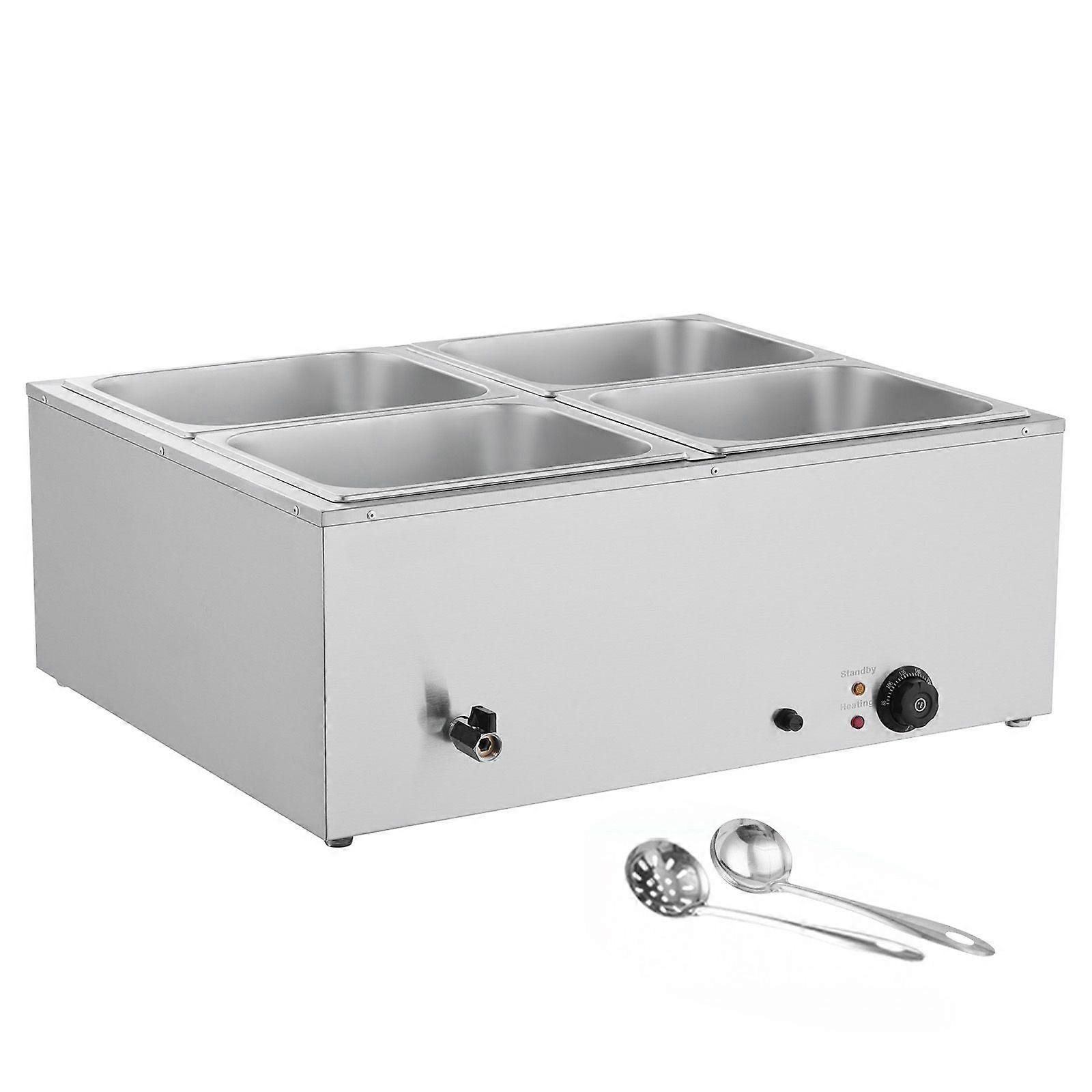Commercial Food Warmer, 1500W, 4-Pan Fast Heating Countertop Buffet Bain Marie with Soup & Perforated Ladles