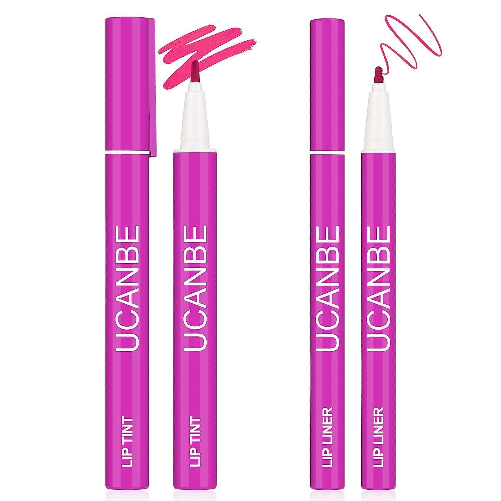 Matte Lip Stain and Waterproof Liquid Lipstick Set with Lip Liner, Long Lasting Smudge Proof, 06 Bright Pink
