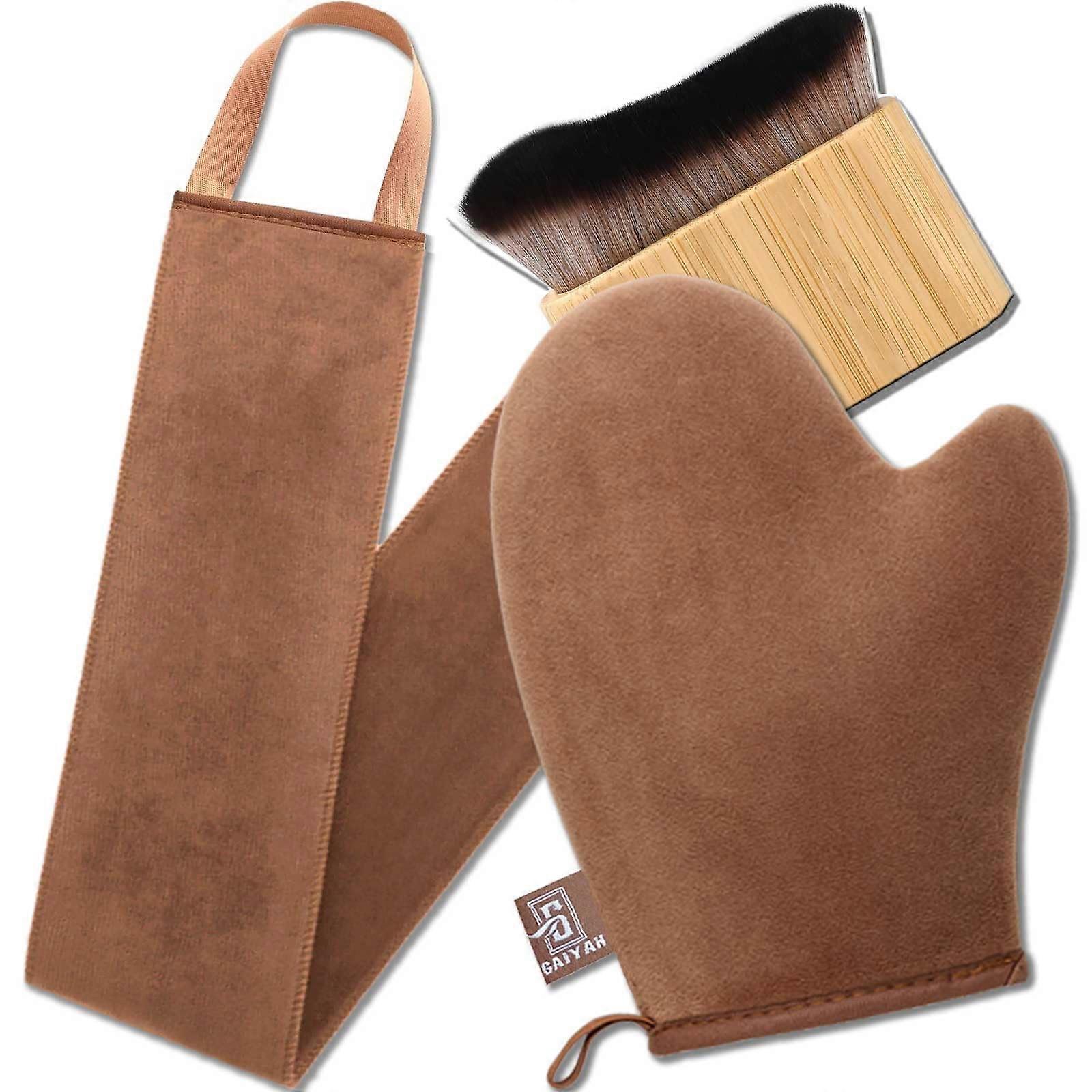 Self Tanning Mitt Applicator Kit 3 Pack with Kabuki Body Brush and Back Applicator, Velvet Soft