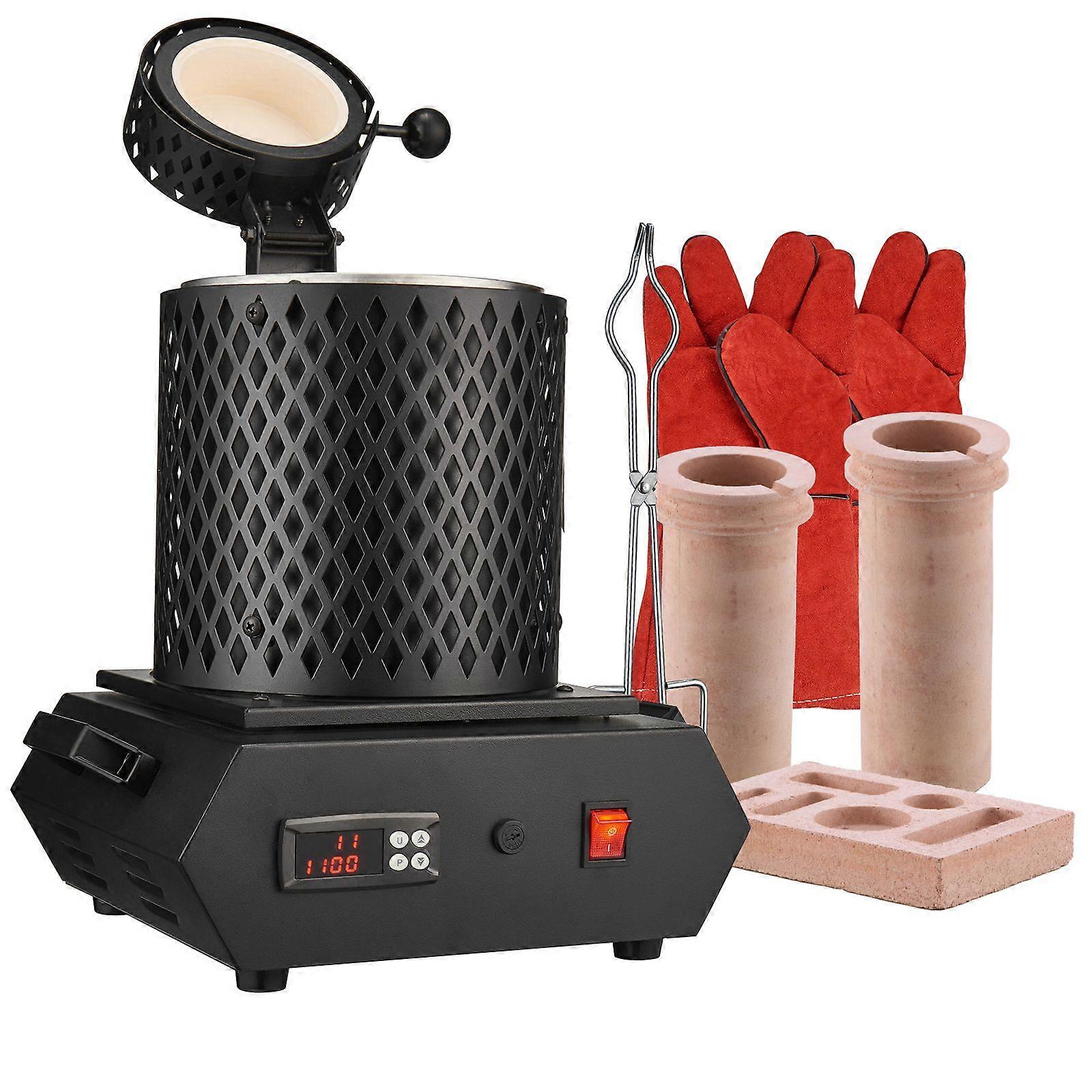 Gold Melting Furnace, 1350W, 1150C Max Temperature, with 1 kg and 3 kg Ceramic Crucibles, Crucible Tongs, and Gloves