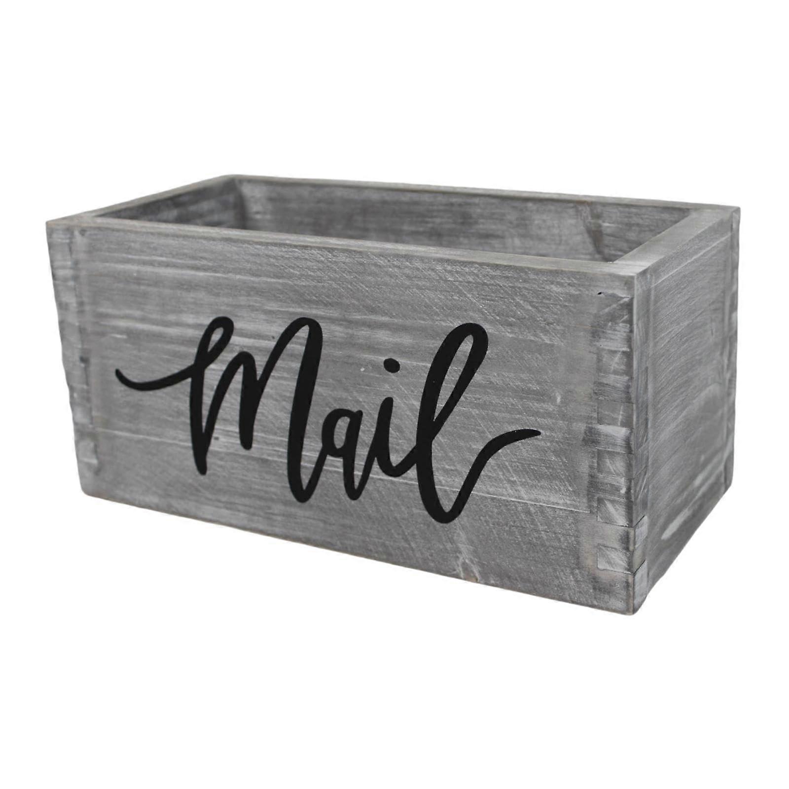 Wooden Mail Organizer Wall Mounted Rustic Letter Holder for Home Office Desk Entrance Gray