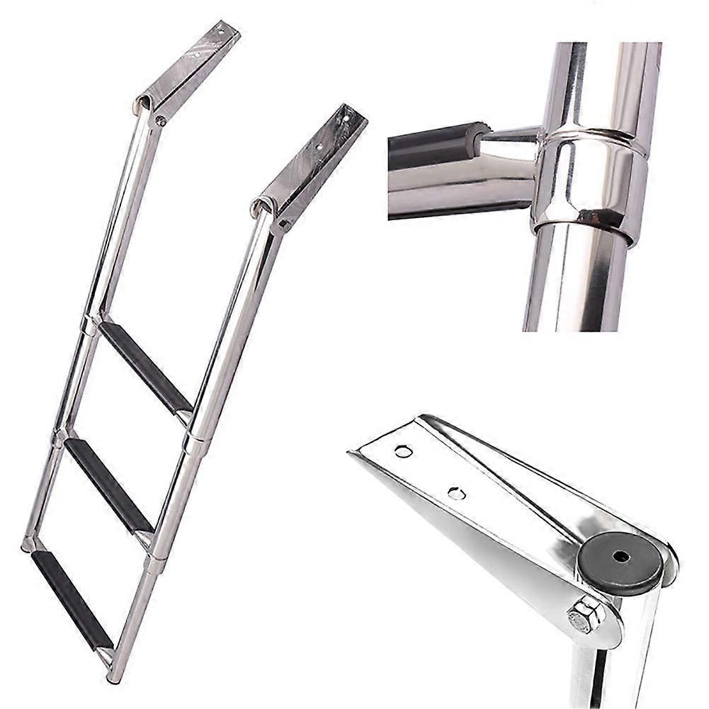 Stainless Steel 3 Step Telescoping Boat Ladder with Wide NonSlip Pedals and AntiRust Design