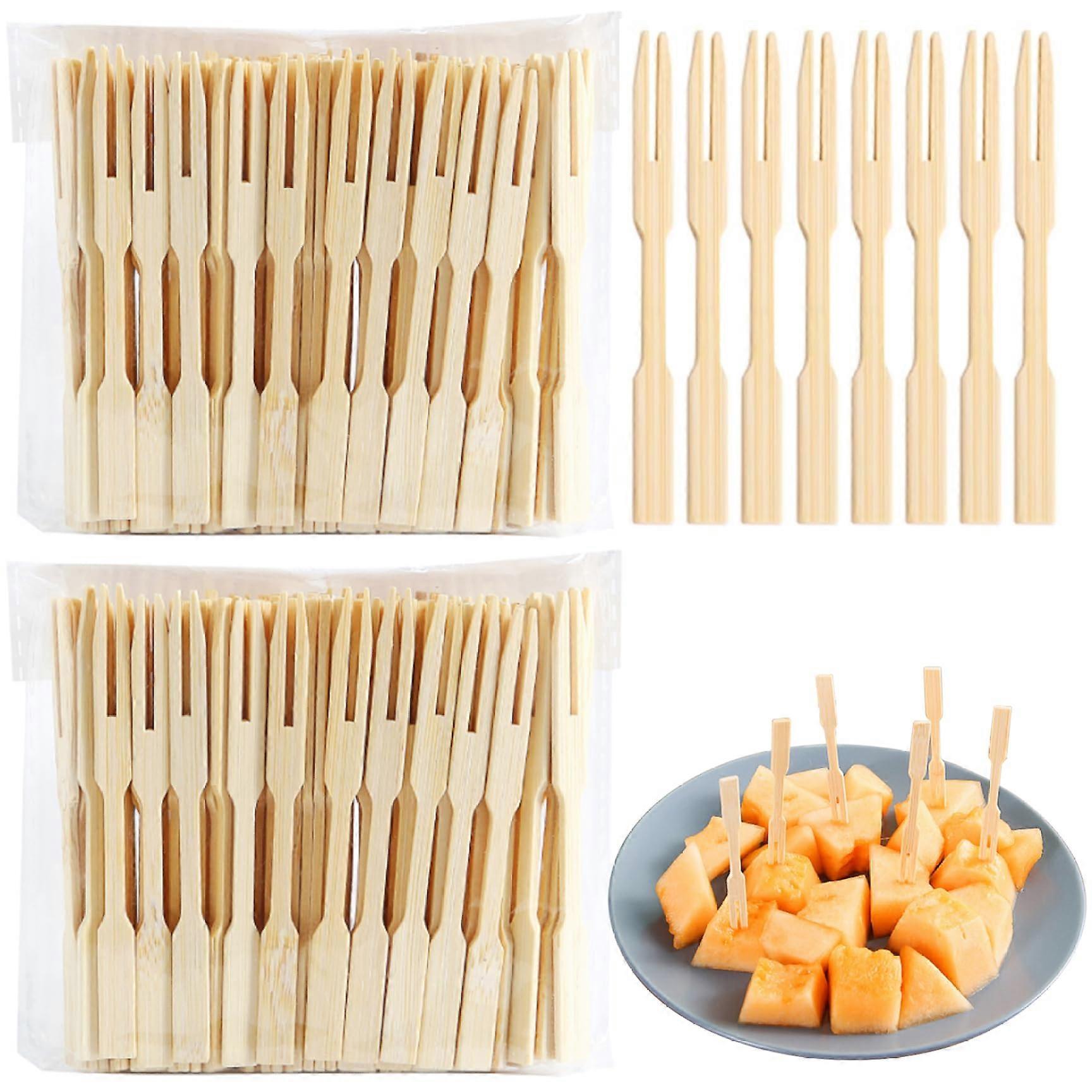 160Pcs Bamboo Appetizer Forks, 3.5 Inch EcoFriendly Biodegradable Dessert Picks for Party Food