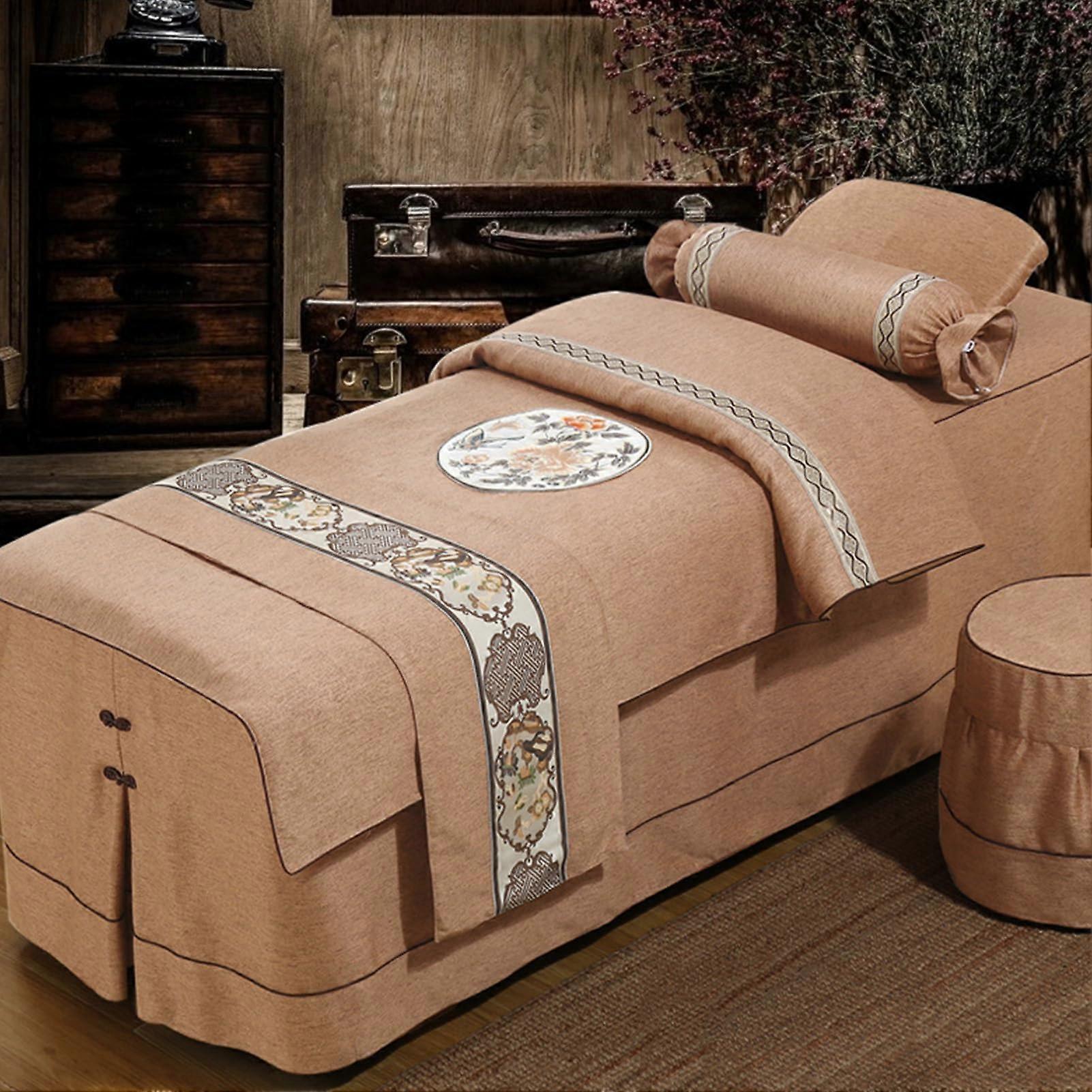 Massage Table Cover Set 75x190cm with Face Hole, Elastic Corners, Washable Linen, Camel 4pcs