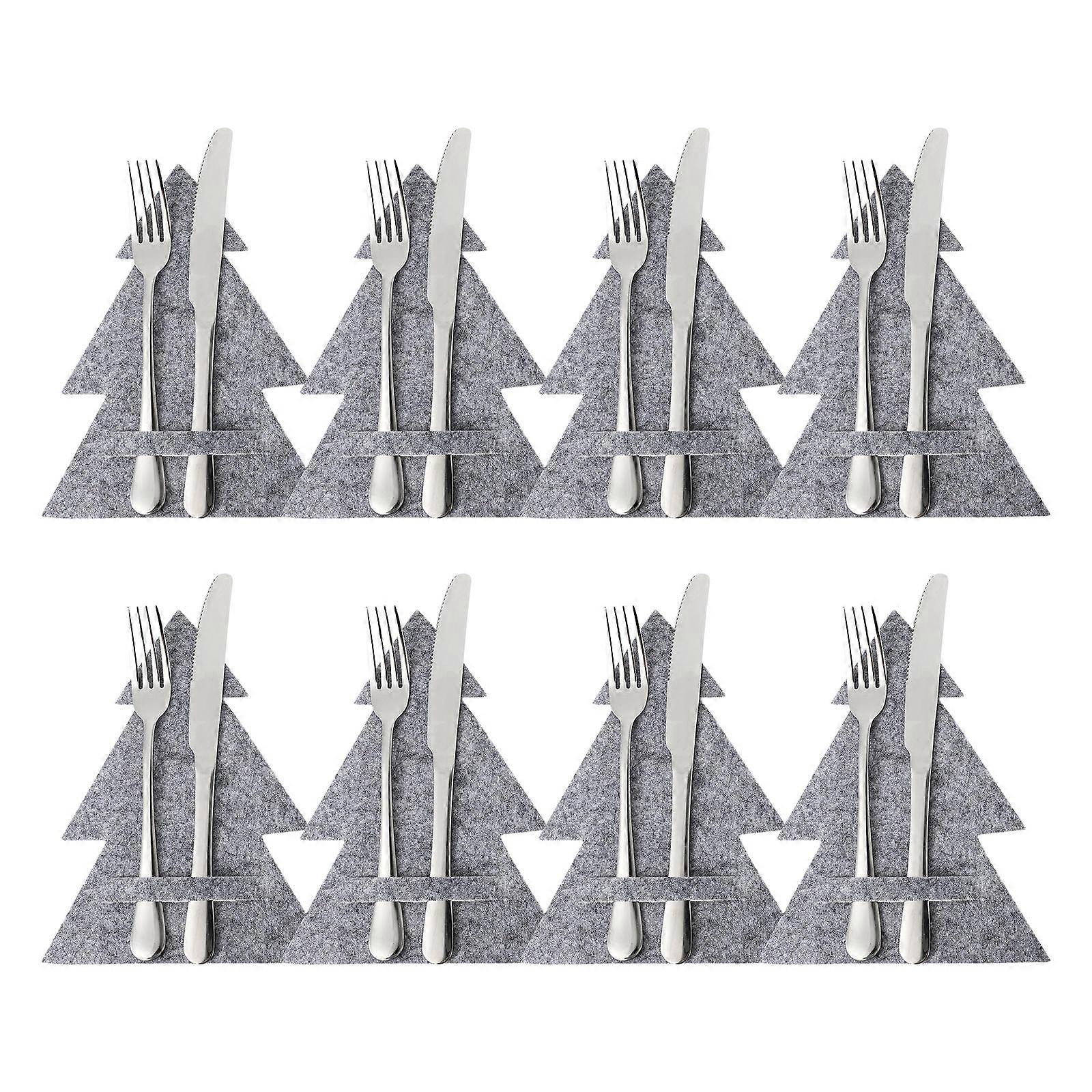 Grey Xmas Tableware Bag Festive Cutlery Covers for Christmas 8Pcs