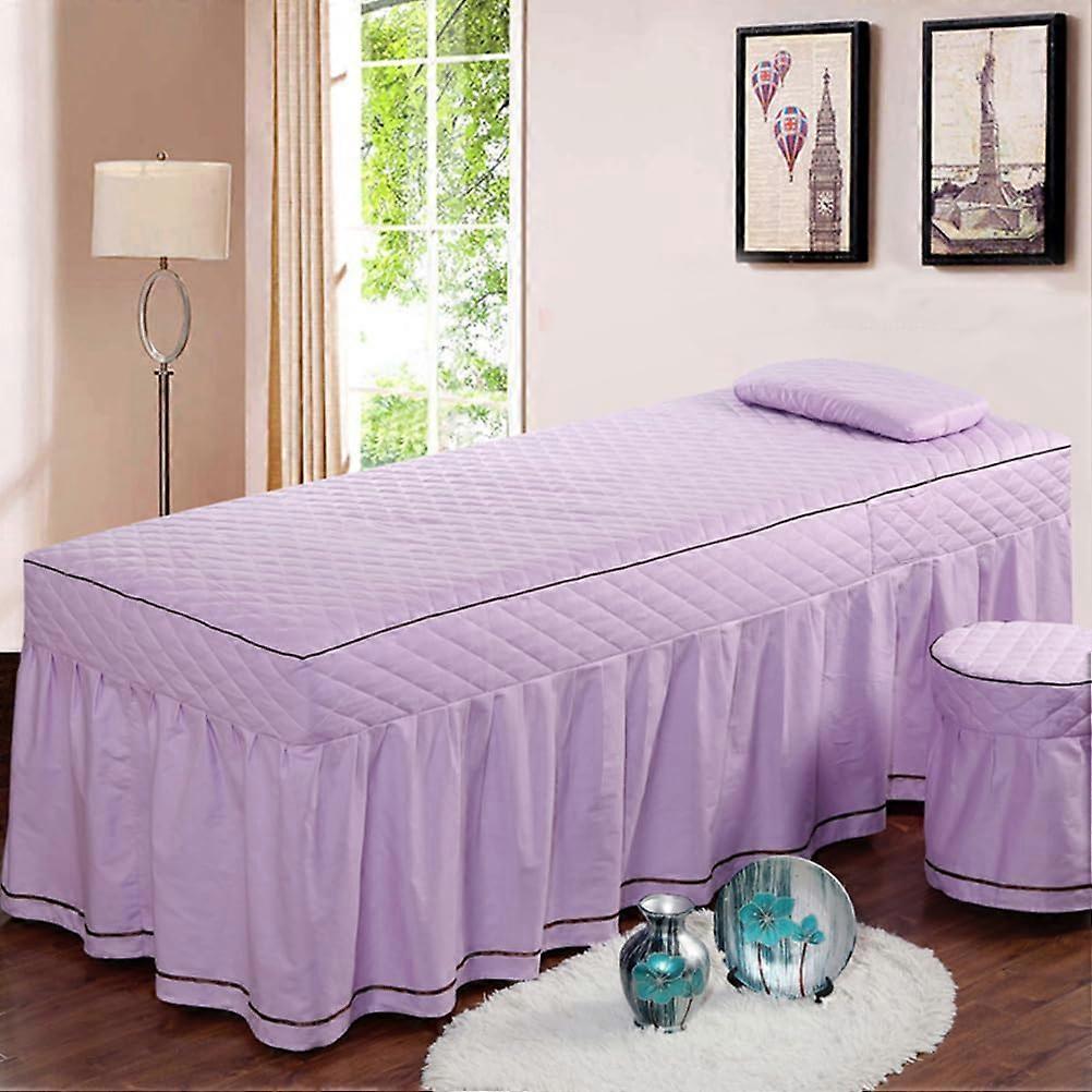 Purple Massage Table Cover with Face Hole, Washable Linen Spa Bed Sheet 75x190cm with Side Pocket