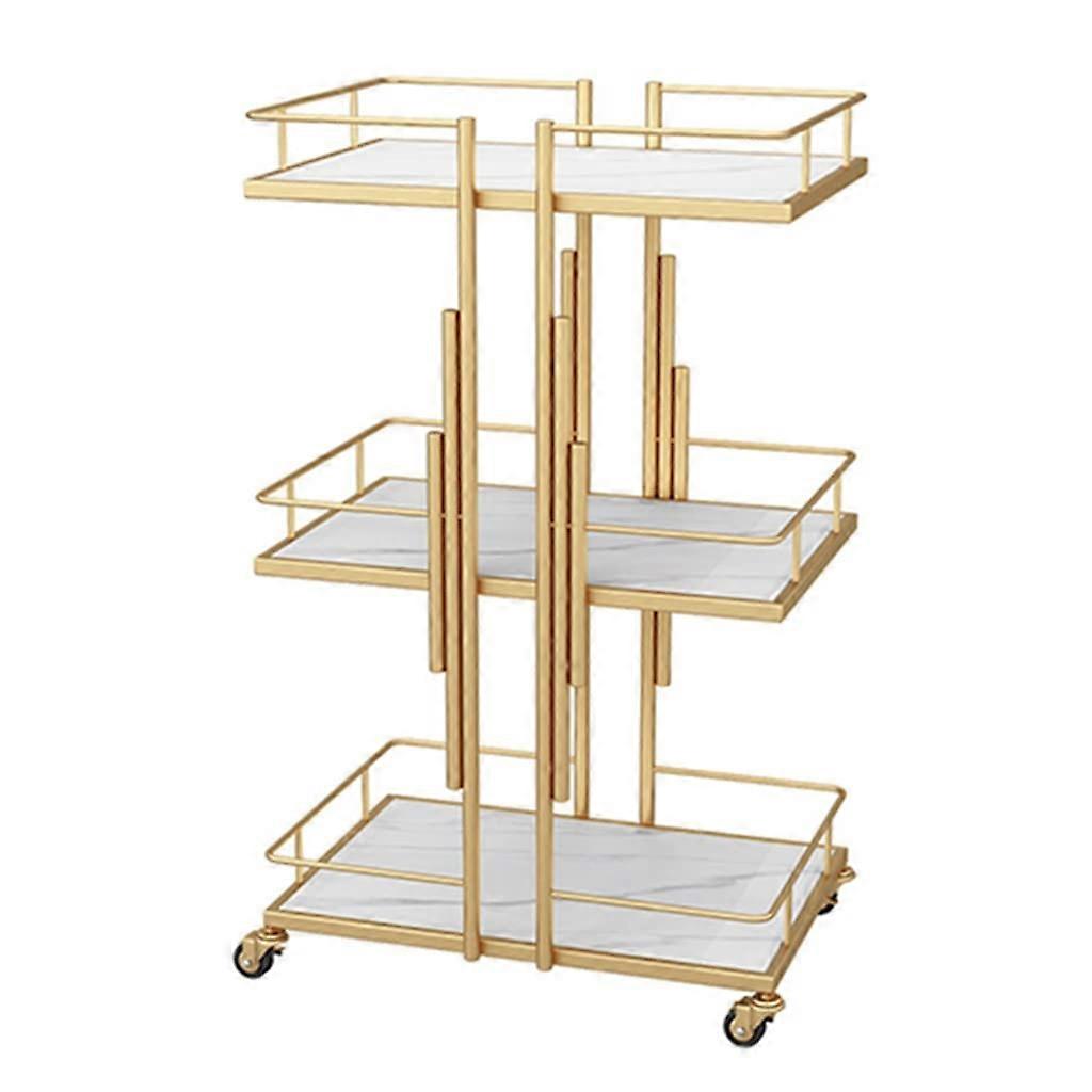 Rolling Utility Cart 3 Tier Gold Metal Frame with Waterproof Marble Shelves and Lockable Wheels