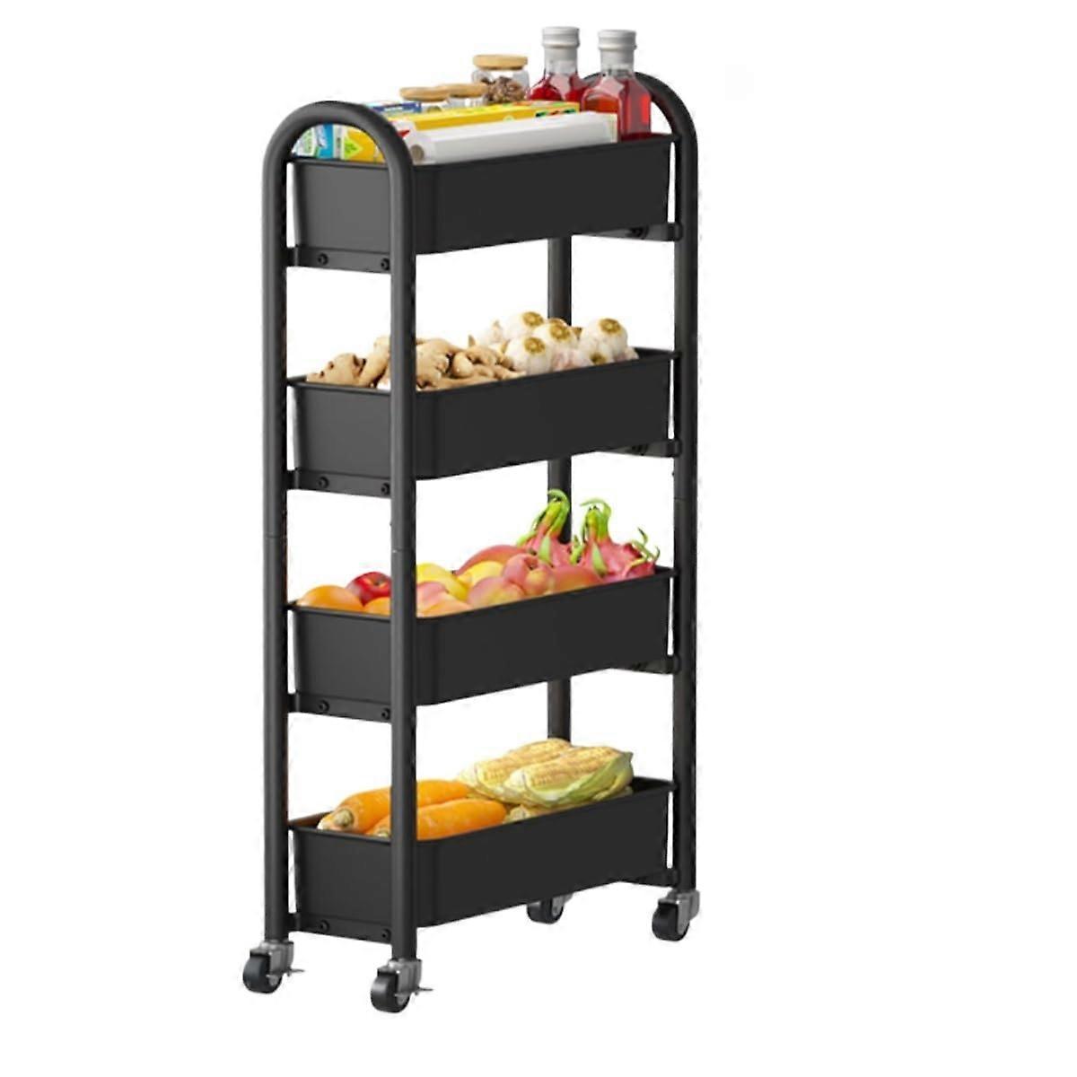 Kitchen Storage Cart with HeavyDuty Wheels, 3 Tier Metal Wire Rolling Utility Rack, Large Capacity Black Organizer for Pantry and Vegetables