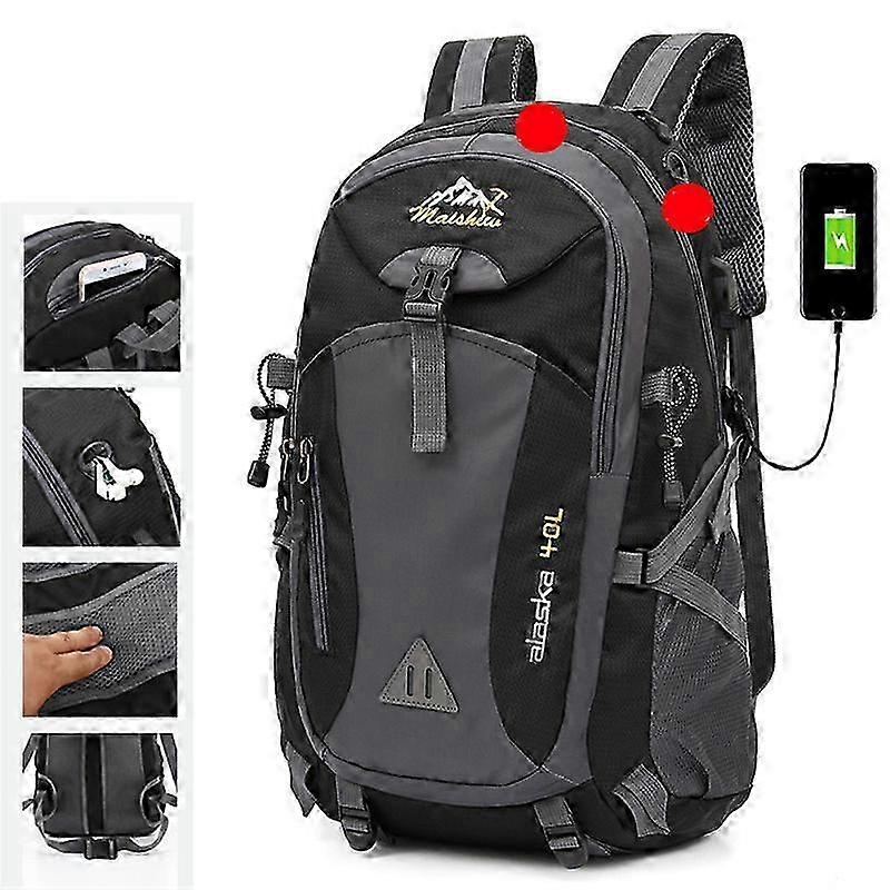 40L Unisex Waterproof Lightweight Small Travel Backpack, with/without USB Charging Port, BLACK