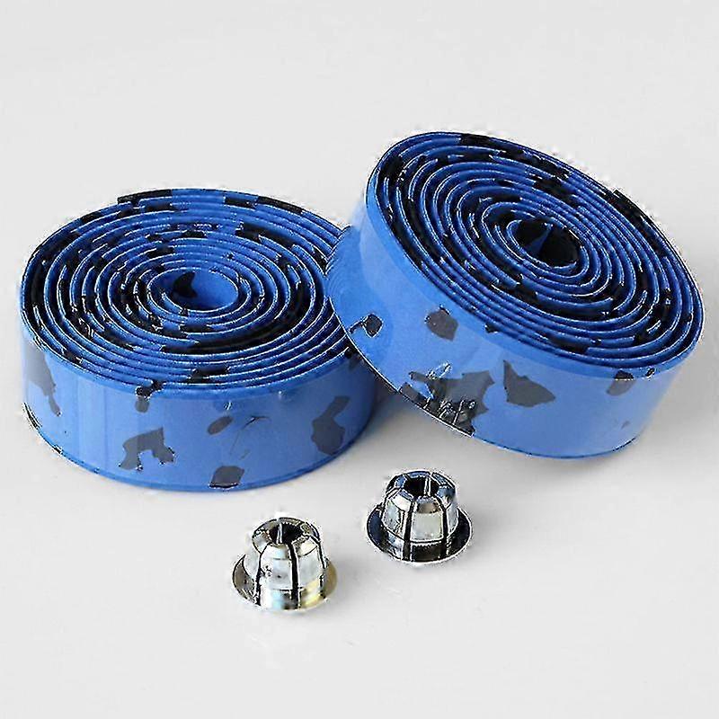 Road bike handlebars with cork handlebar tape and two stoppers, Black/Blue.