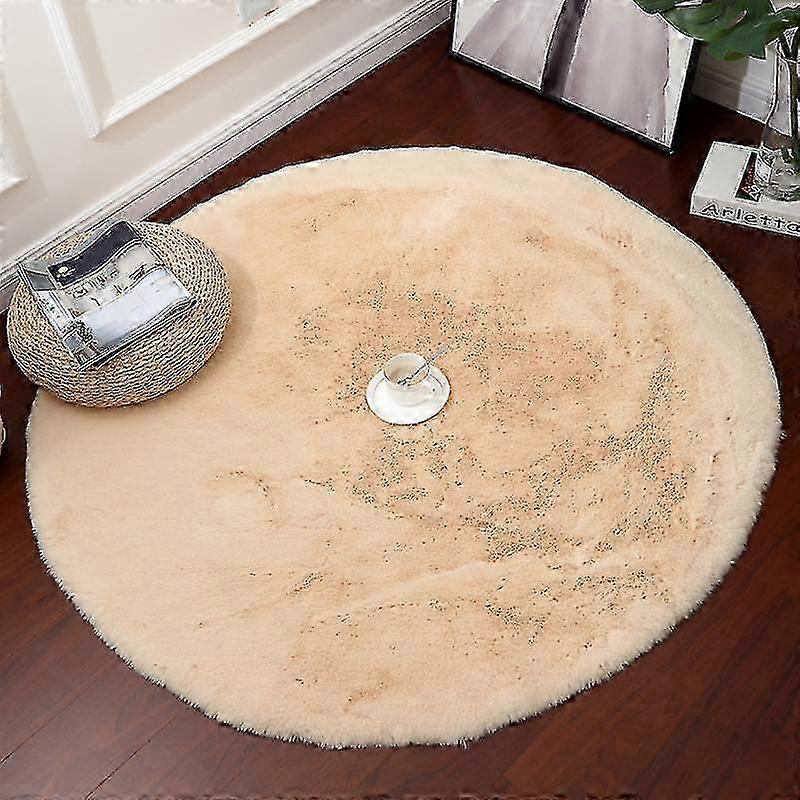 Round long-pile rug, large size, non-slip, long-pile carpet for living room and bedroom, Beige, 40CM