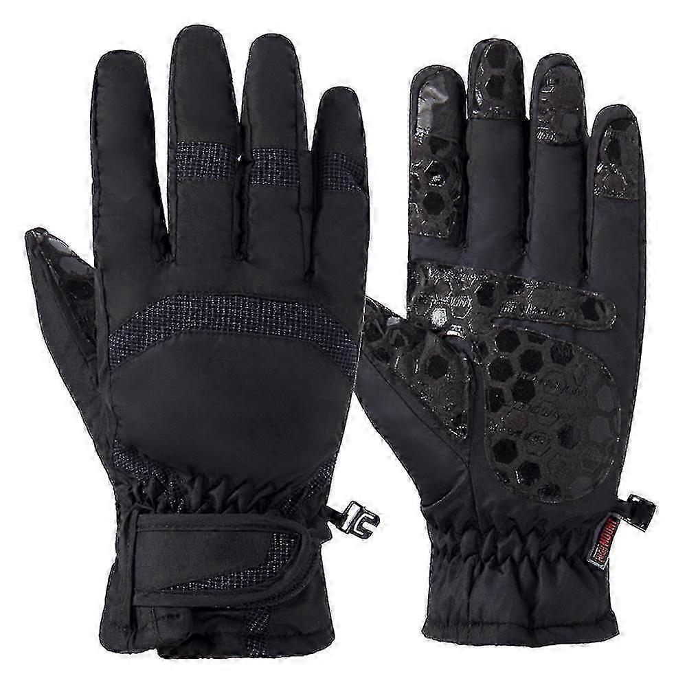 Ski gloves, winter, touchscreen, waterproof, windproof, cycling, warm, fleece-lined, cotton, Black, Style 2