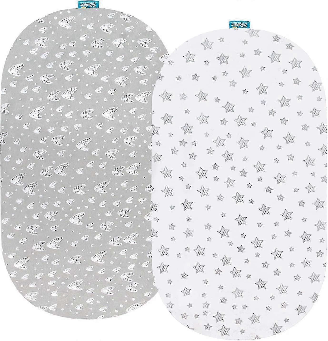 Two sheets for the Graco Sense2Snooze crib, made of breathable and soft cotton knit fabric with a grey print, suitable for babies.