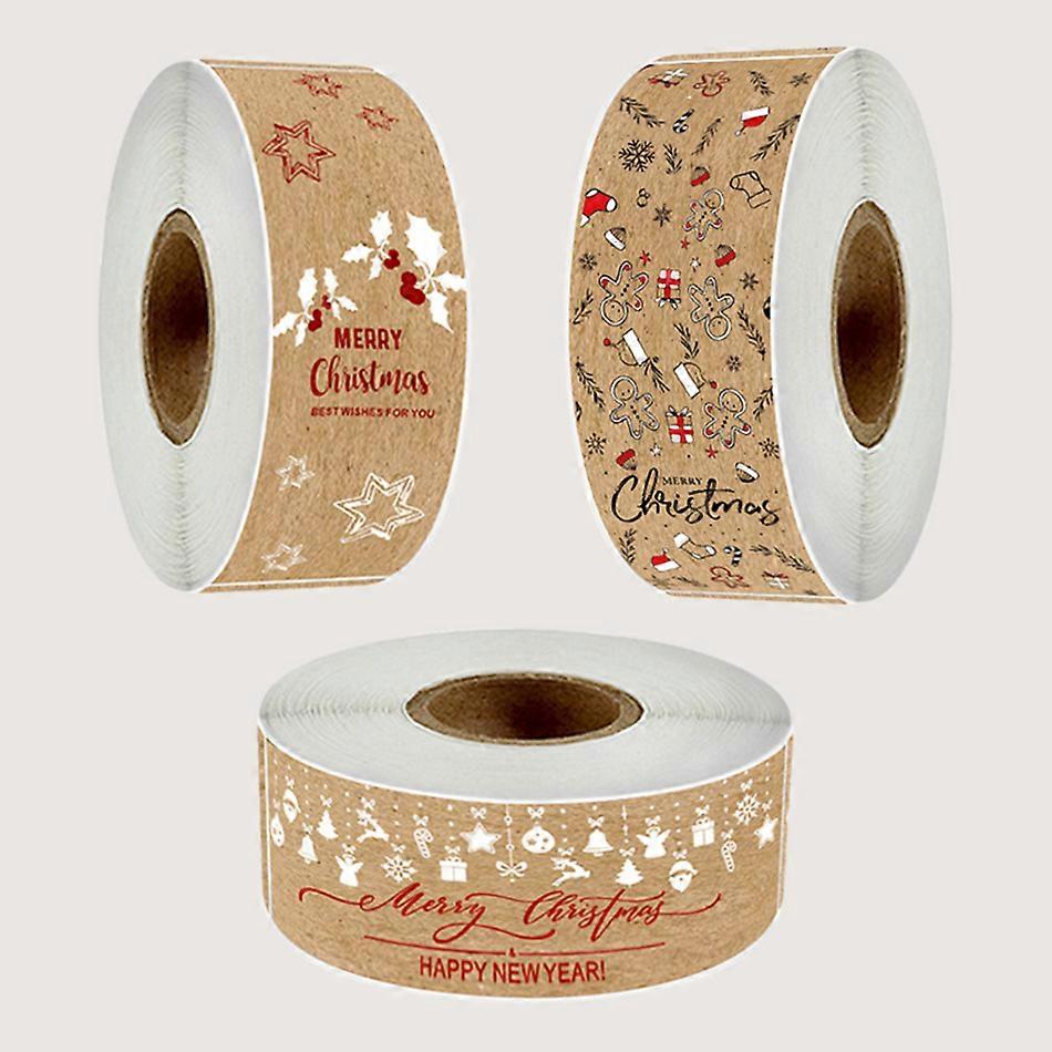150pcs roll Merry Christmas Stickers Kraft Paper Christmas Gift Packaging Labels for Envelopes Cards Wrapping Baking Decoration