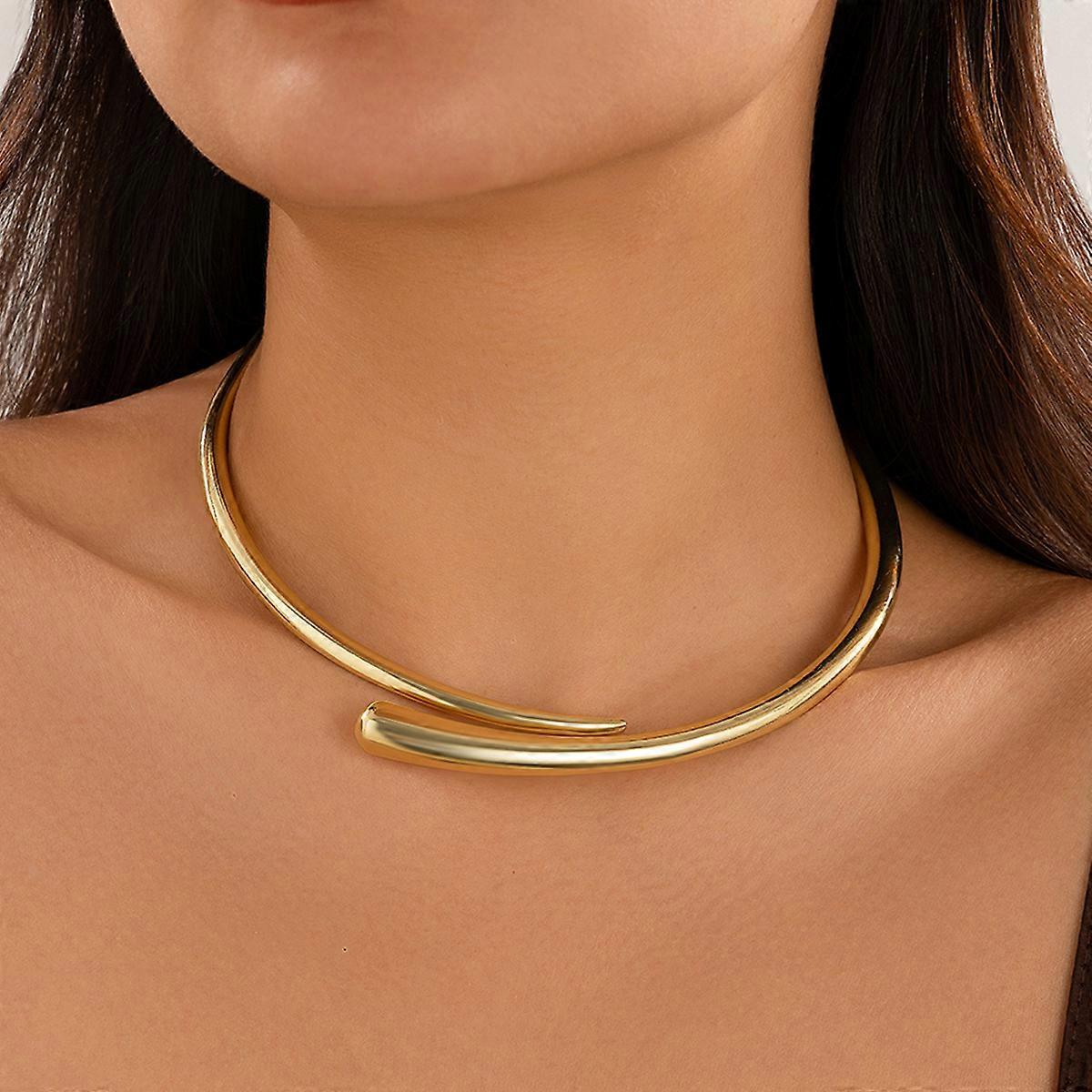 KunJoe Luxury Smooth Surface Hug Open Torques Necklace for Women Elegent Gold Color Metal Choker Collar Chain Wedding Jewelry