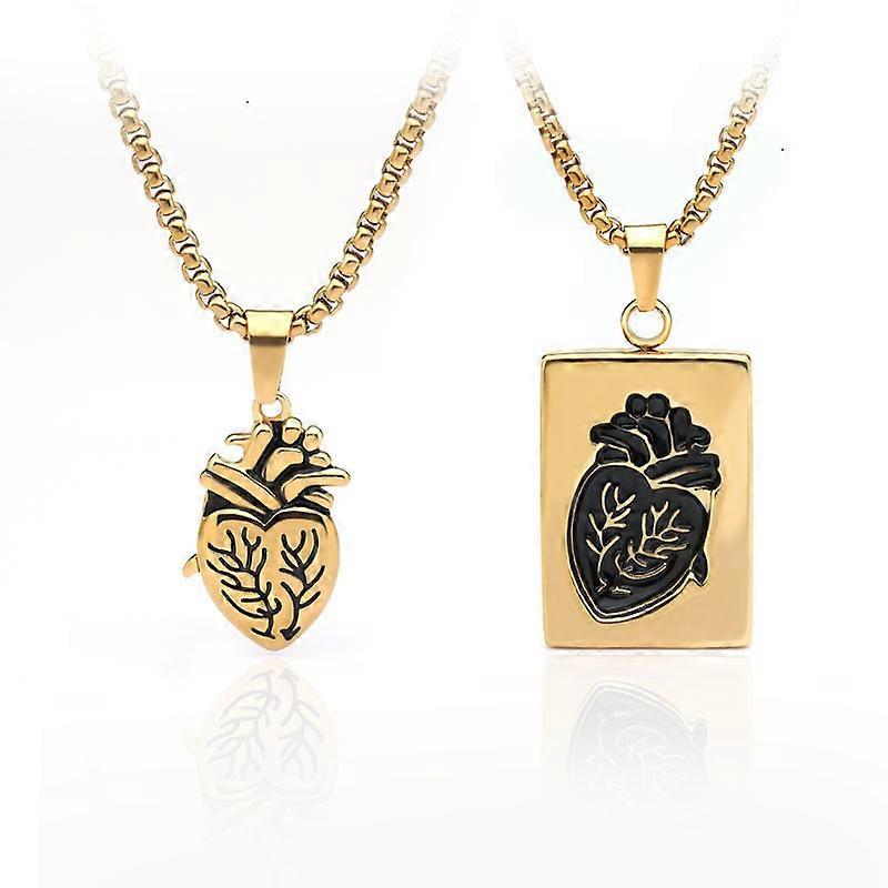 Popular Couple Heart Shaped Bead Chain Rock Style Pendant Necklace