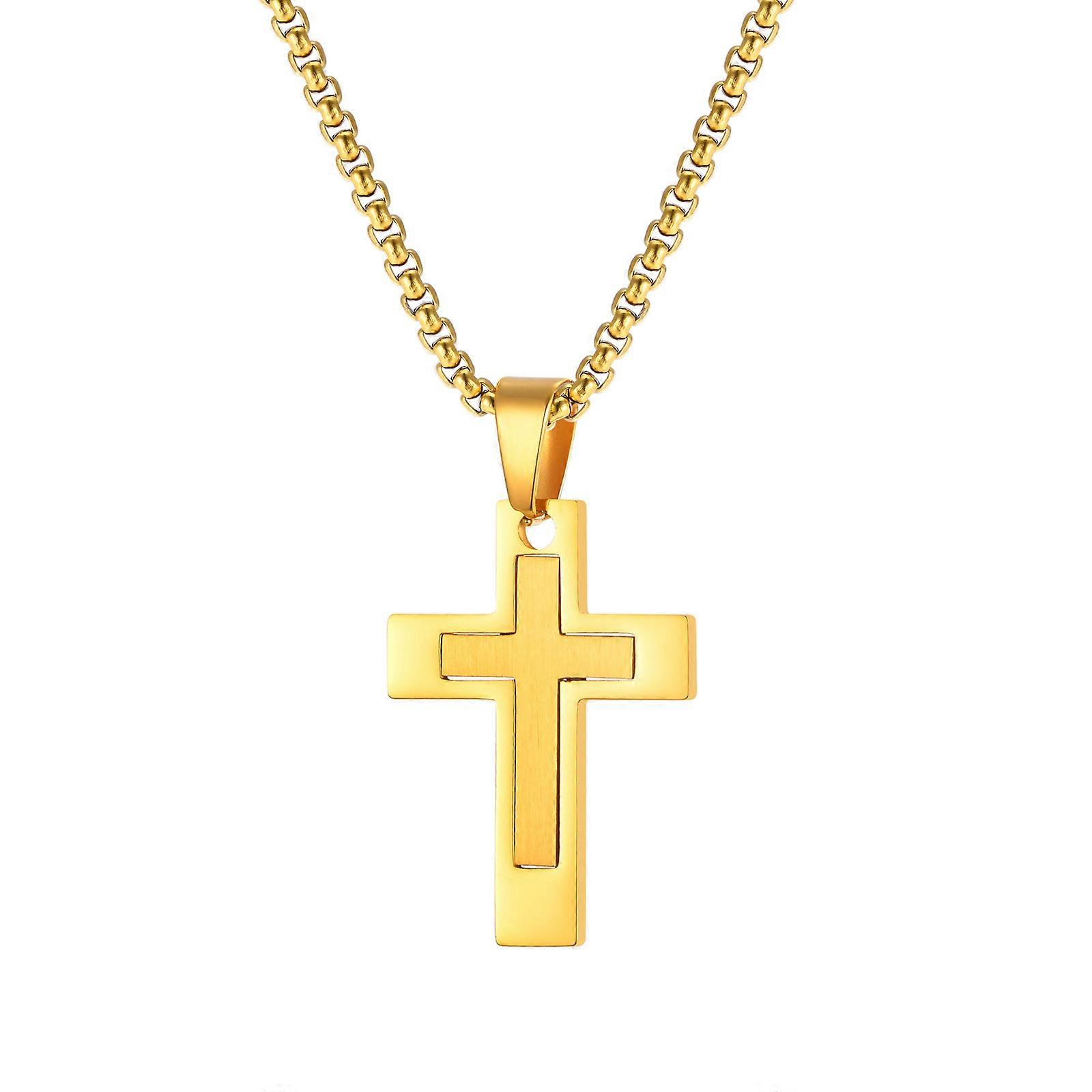 VNOX Stainless Steel Cross Pendant Necklace Black Golden Slive Color 21.6x32.3x2.4mm Hypoallergenic Jewelry Gift for Men Women