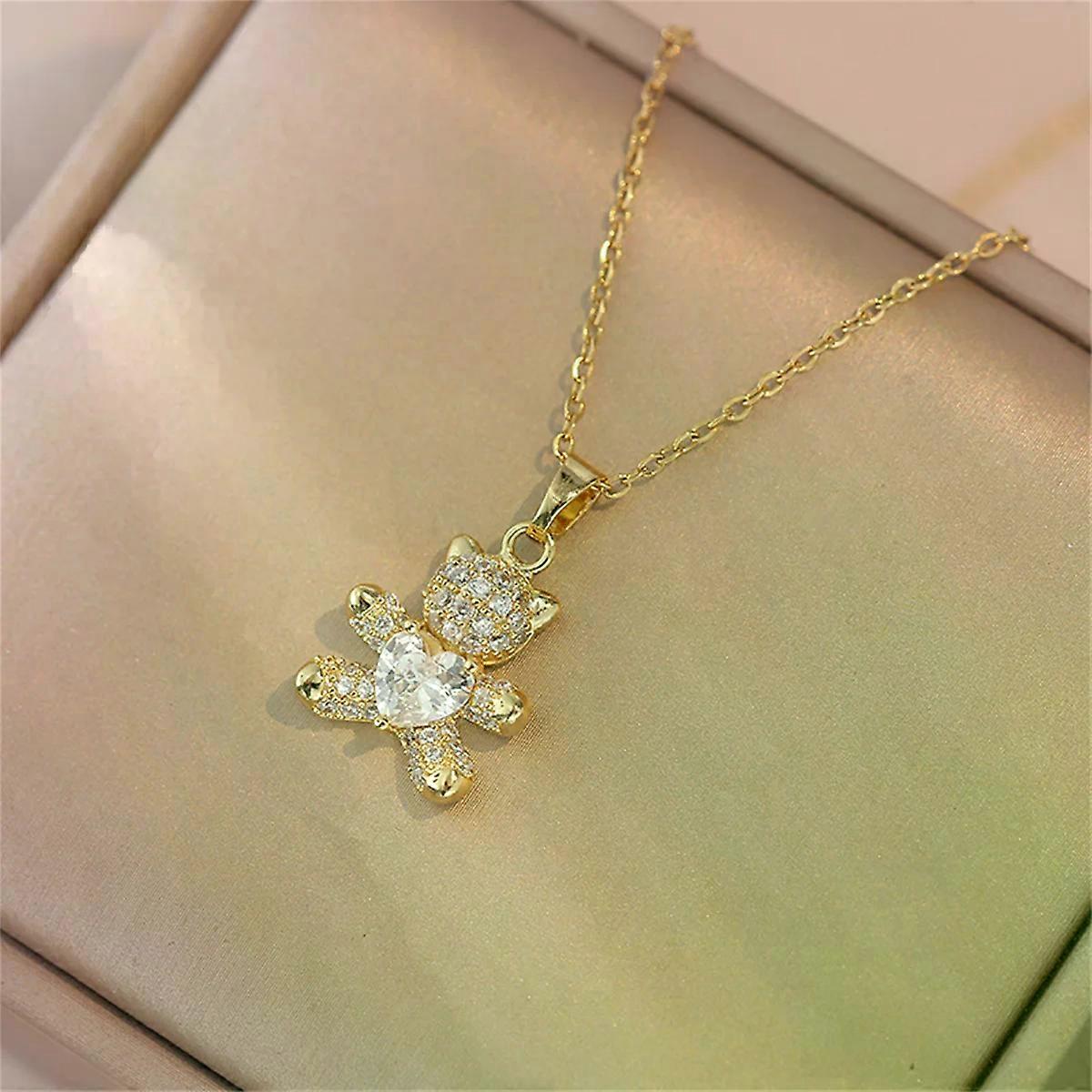 2025 New Fashion Style Titanium Steel Lock Bone Chain Super Sparkling Zircon Heart Bear Pendant Necklace for Women Girls Gift