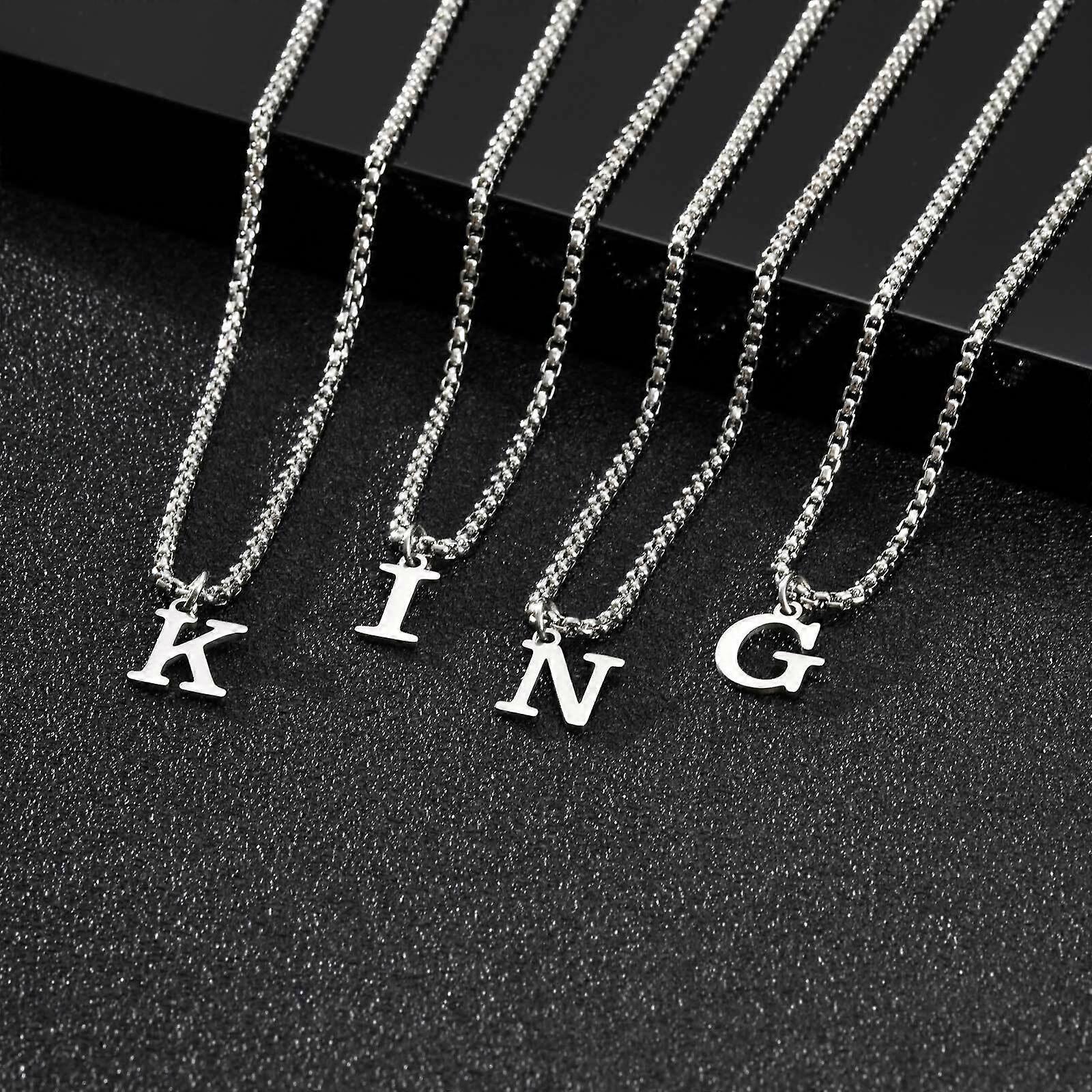 A-Z Initial Letters Men Necklaces,50/55/60cm Stainless Steel Simple Initial Collar,Stylish Classic 26 Letters Jewelry Gifts