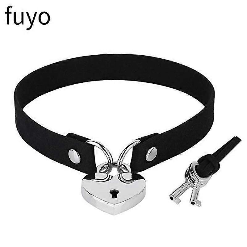 Goth Black Lock Chain PU Leather Choker Necklace Women Heart Necklace Punk Pendant Jewelry Collier Party Grunge Accessories Gift