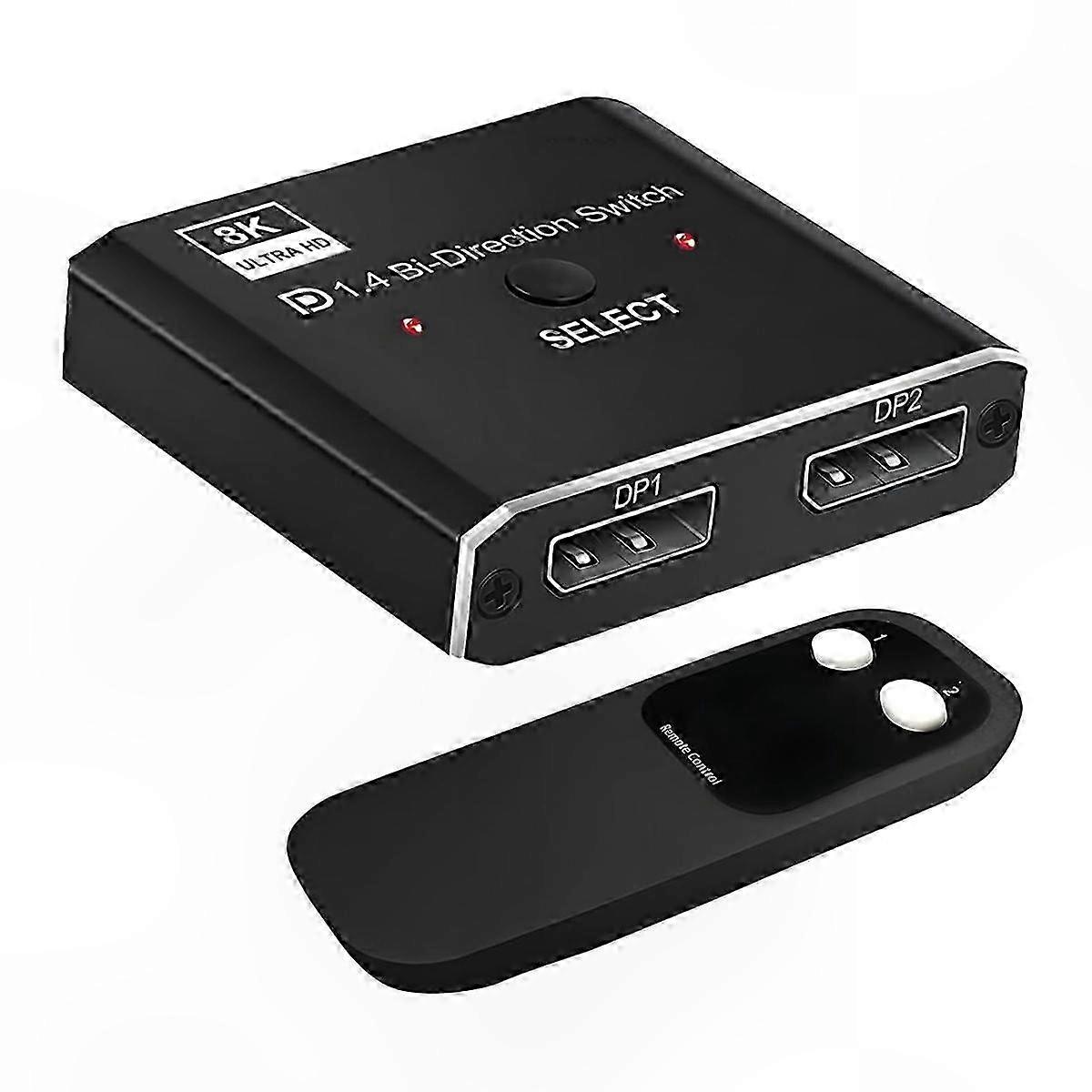 8K DisplayPort Switch 2x1 Out 1x2 In DP Hub Supports 4K120Hz Ultra HD for Computers and Monitors