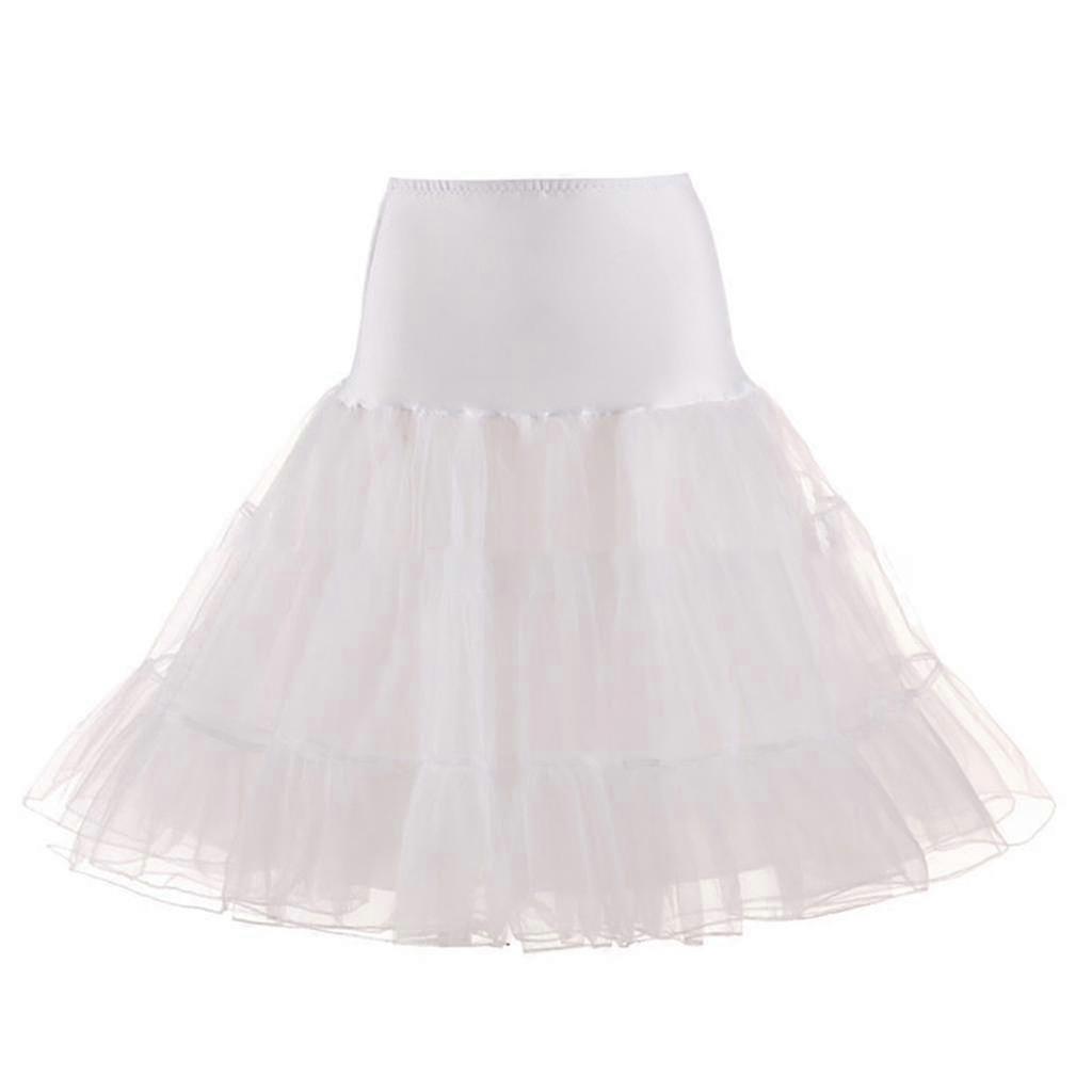 25-26 Women 50s Vintage Tulle Petticoat Bright Solid Color Mesh Hoopless Half Slip Underskirt Knee Length High Waist Layered Flared Crinoline Tutu Ski
