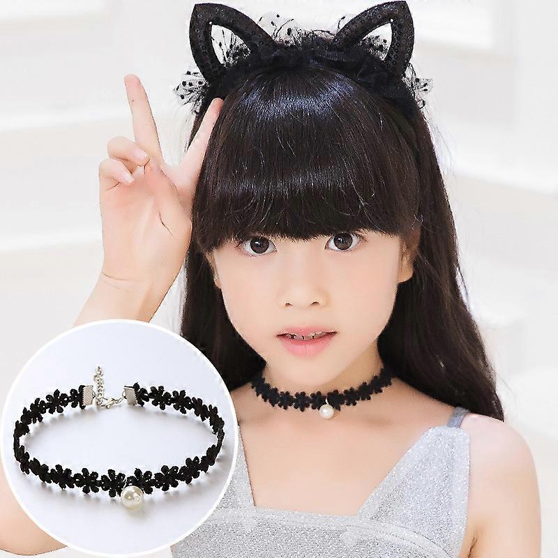 Children Necklace Girl Choker Clavicle Necklace for Children Ornament Chain Lace Elastic Knitted Collar Short Necklace for Lady