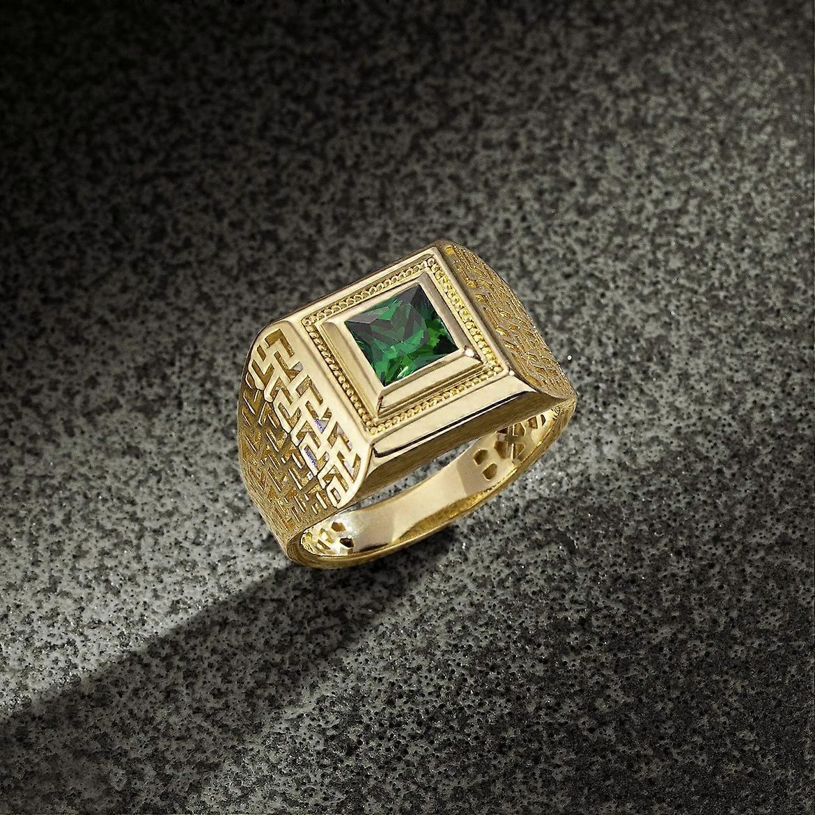 Classical Fashion Gold Color Men Rings Square Green Stone Hollow Rings Jewelry Party Gift