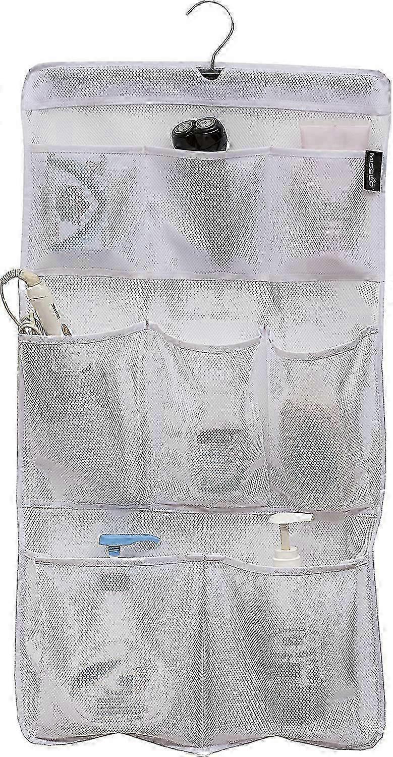 25-26 8 Pockets Mesh Shower Caddy Organiser Bathroom Storage Shower Tidy Hanging Pockets Rail