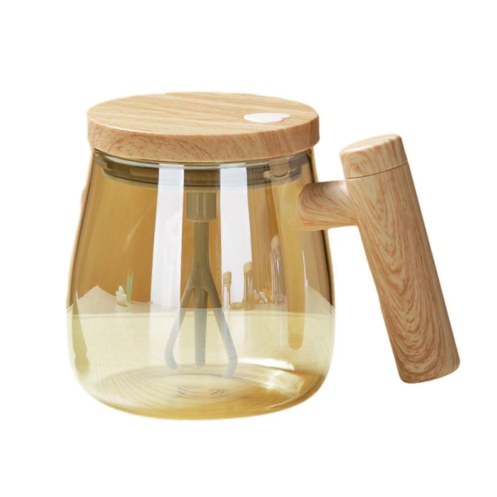 Features:High-quality material: Made of high-quality borosilicate glass material, cold and heat resistant, not easy to break, can be used for a long time, durable.EASY TO PORT: With this self-stirrer coffee mug, you can perfectly mix drinks in seconds. Just push a button, no spoons or whisks required.Stirring with Easily: This mug creates a powerful twisting when you press the button. It easily stirs thick, grainy liquids for quick and thorough drink mixing. More efficient and effective than traditional methods.COMFORTABLE HANDLE: Ergonomic wooden handle design, easy to hold and easy to carry.Great Gift: This self-stirring coffee mug is a great gift for relatives, friends, colleagues on Christmas, Halloween, Thanksgiving, Birthday and other festivals.Notice:1.Actual color may be slightly different from the image due to different light effect2.Please allow 1-3cm deviation due to manual measurementMaterial: high borosilicate glassProduct size: 14*10.5cmCapacity: 400MLPower supply: AAA battery (Not include battery) Note: Due to the light and screen setting difference, the item's color may be slightly different from the pictures. Please allow slight dimension difference due to different manual measurement.