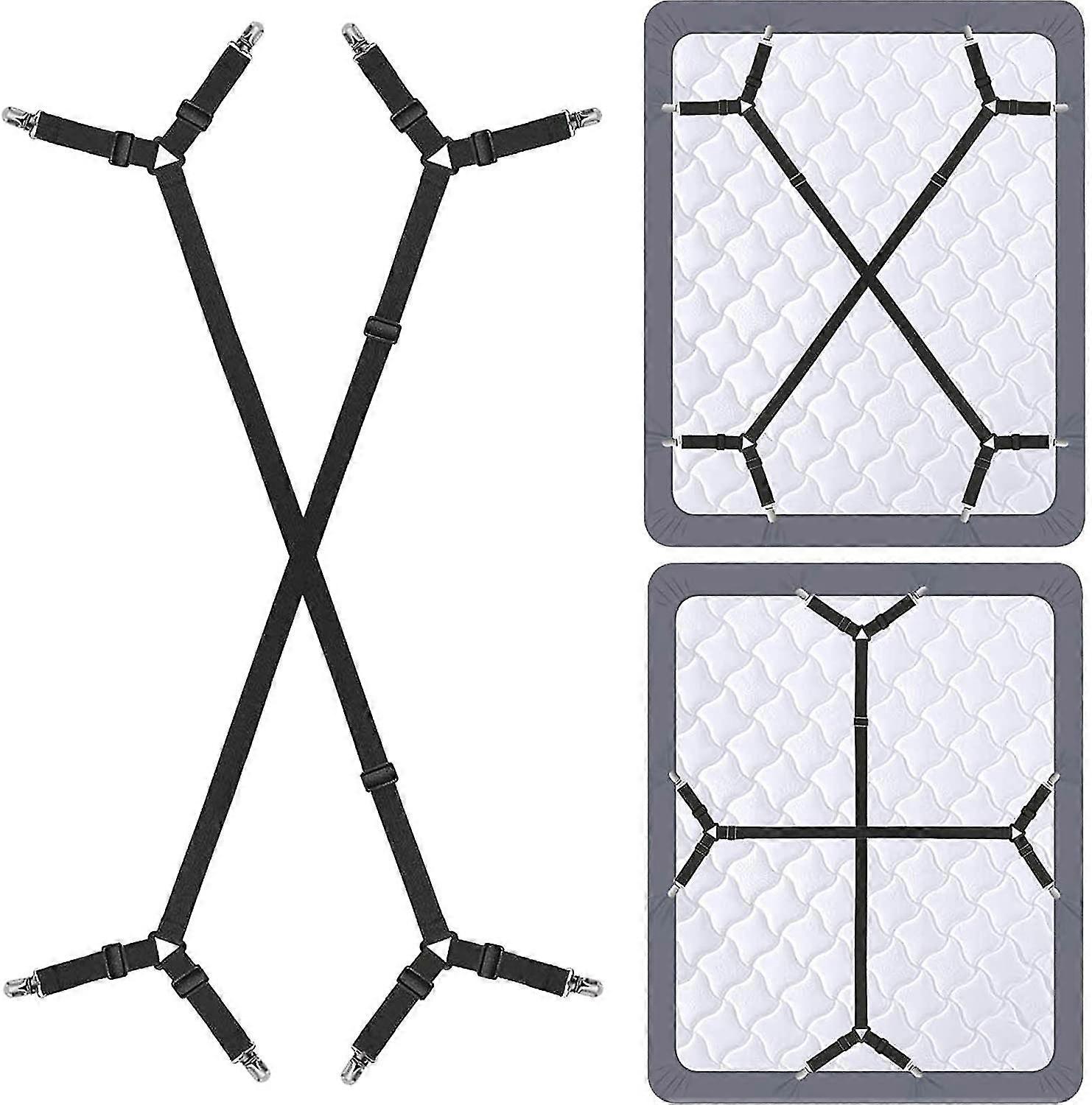 25-26 2pcs/set Black Bed Sheet Holder Straps - Adjustable Crisscross Sheet Clips Elastic Band Fitted Bed Sheet Fasten Suspenders Grippers