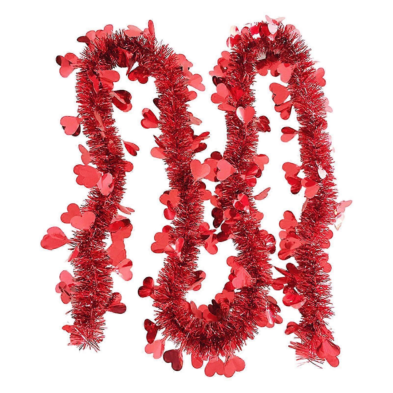 Valentine's Day Garland Shiny Heart Tinsel Garland Romantic Hanging Pull Strips for Home Parties Decoration 25-26