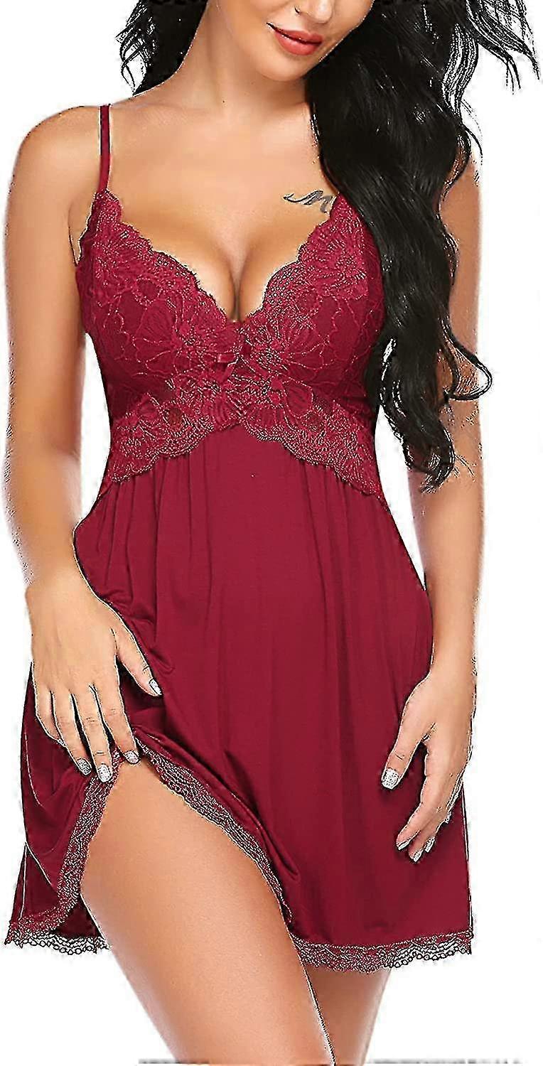 25-26 Avidlove Women Babydoll Nightgown Chemises Lace Modal Sleepwear V-neck Full Slip Sleep Dress