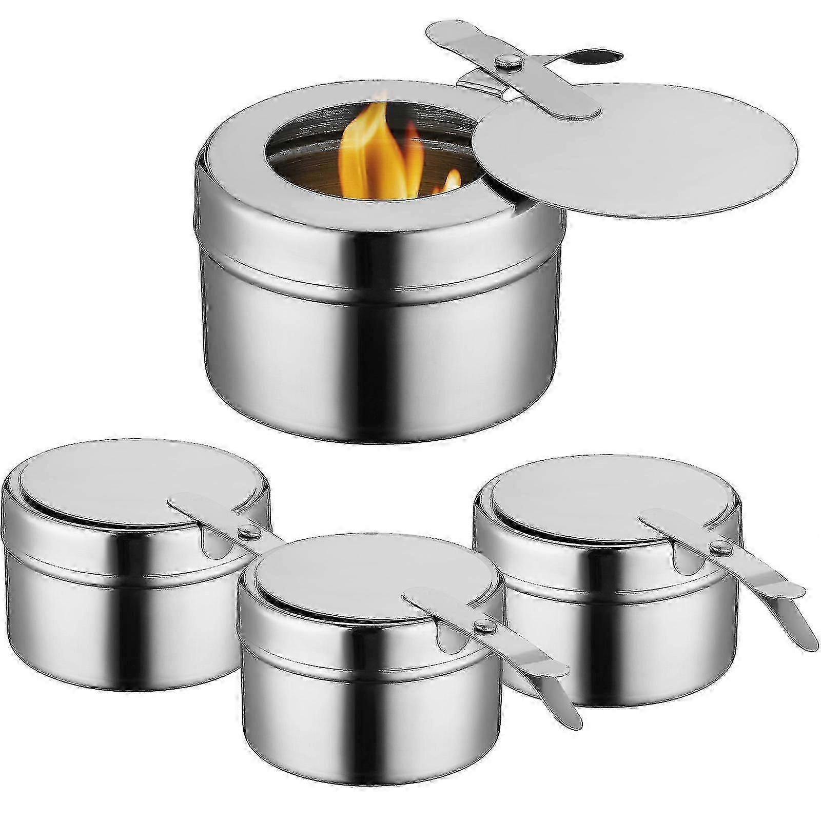 4 Pcs Stainless Steel Fuel Holders With Cover Chafer Canned Heat Buffet Warmers Fuel Cans For Buffets Barbecue Parties-FCY 25-26
