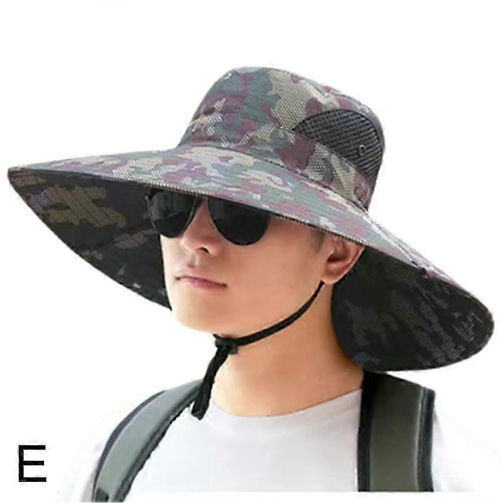 Men's Fishing Hat with Large Brim, Summer Sun Protection Foldable Camouflage Hat 25-26