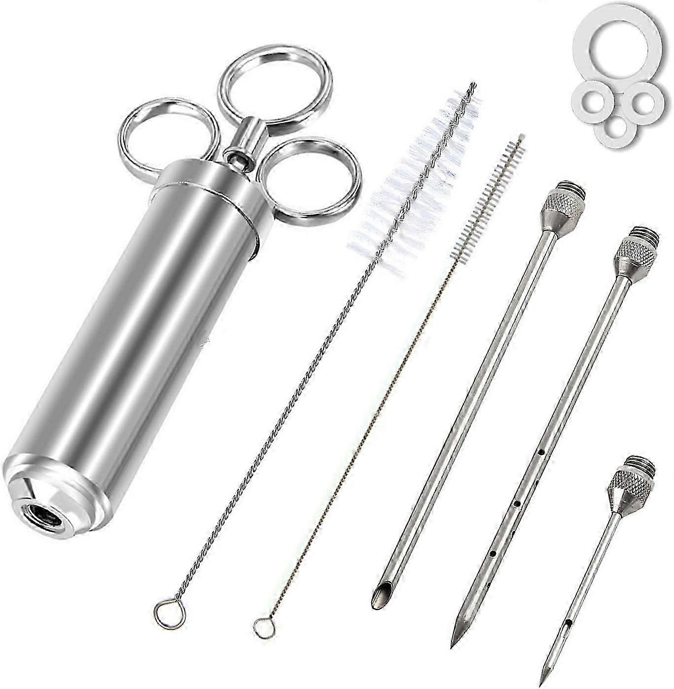 2-Ounce 304 Stainless Steel Seasoning Injector with 3 Professional Marinade Needles BBQ Meat njector 26s