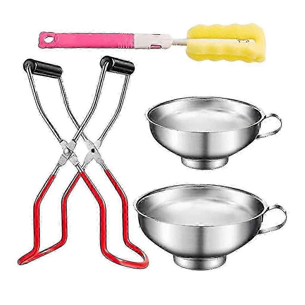 25-26 yougangcanning Tool Kit-four-piece Stainless Steel Canned Funnel Sponge Cleaning Brush