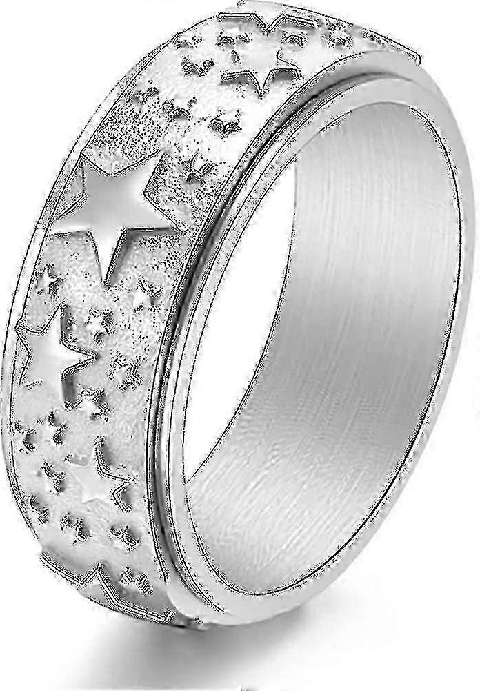 25-26 Titanium Stainless Fidget Ring 8mm Moon Star Sun Spinner Rings Silver Gold Black Stress Relieving Anxiety Ring Wide Carved Worry Band For Women