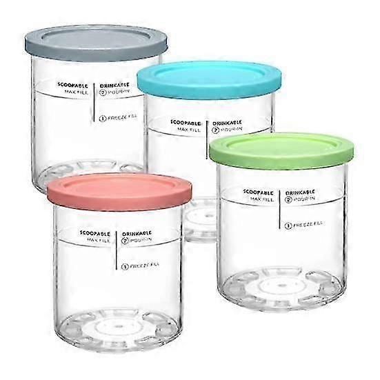 4Pcs Ice Cream Container for Ninja NC500 Ice Cream Maker Leaf Proof Lid Food Grade Portable Kitchen 24Oz Freezer Ice Cream Pint Jar Cup 25-26