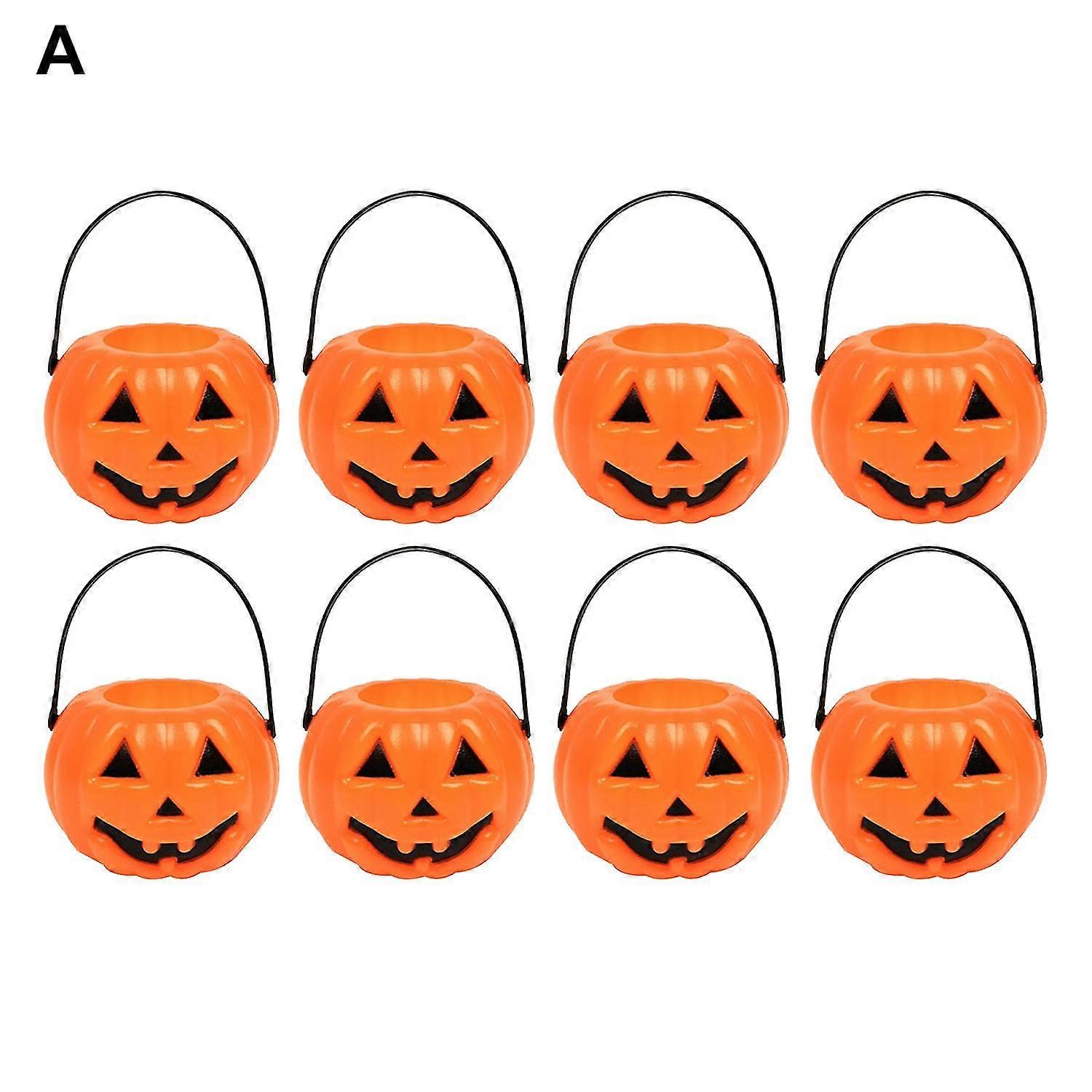 25-26 8Pcs Attractive Candy Bucket Handle Design PC Pumpkin Shape Compact Portable Storage Holder for Fest