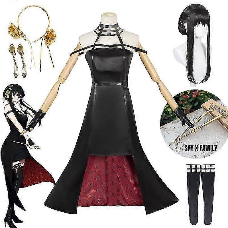 25-26 Anime Spy X Family Yor Forger Cosplay Costume Yor Briar Women Dresses Wig Weapon Headband Earrings Gloves Stockings