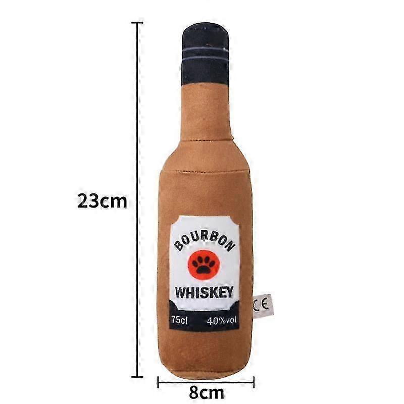 Dog Plush Toys Pet Squeaky Printed Beer Bottle Shape Toy Dog Bite-Resistant Clean Teeth Chew 26s
