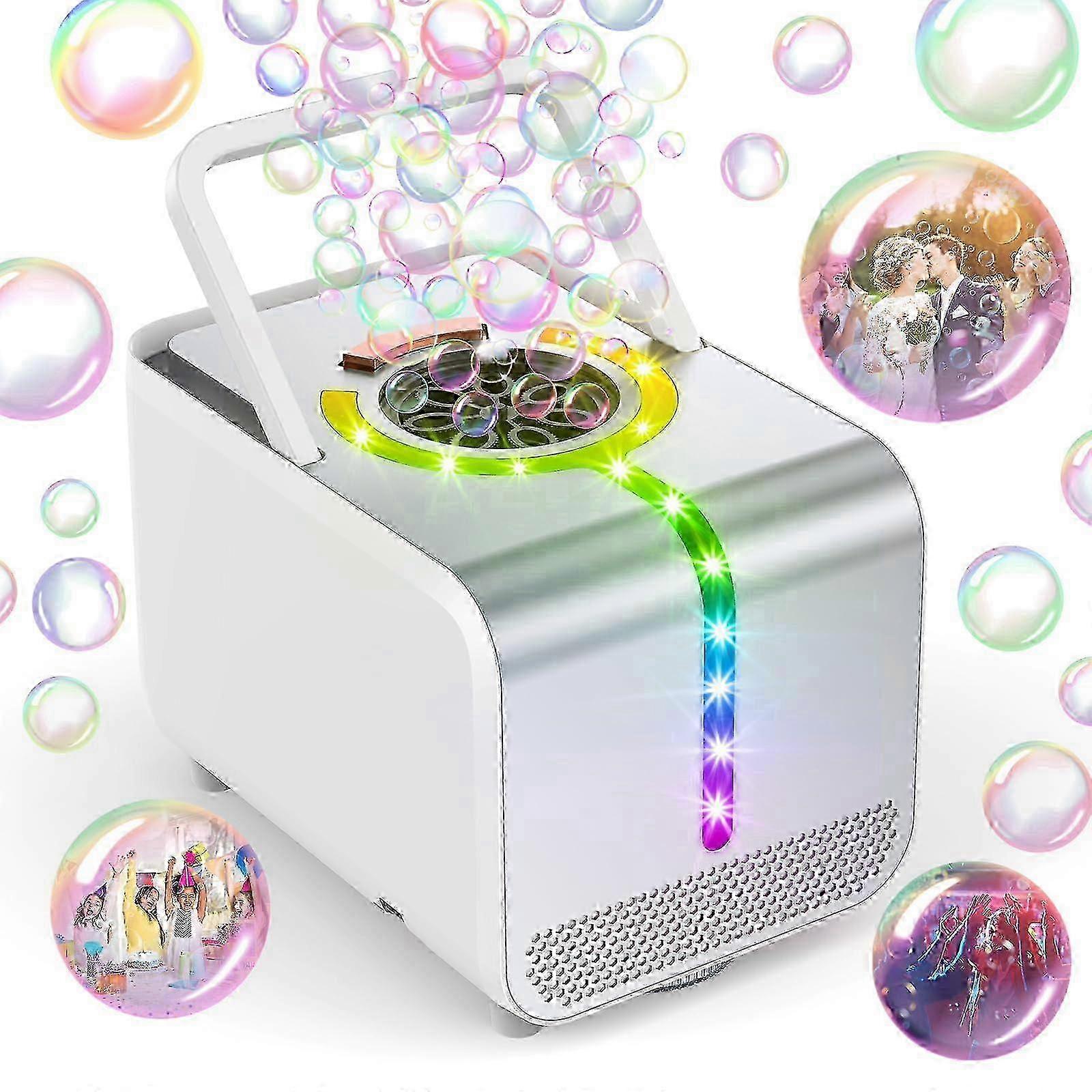 25-26 Durable Automatic Bubble Blower with LED Lights - Over 20,000 Bubbles per Minute - for Children's Celebrations