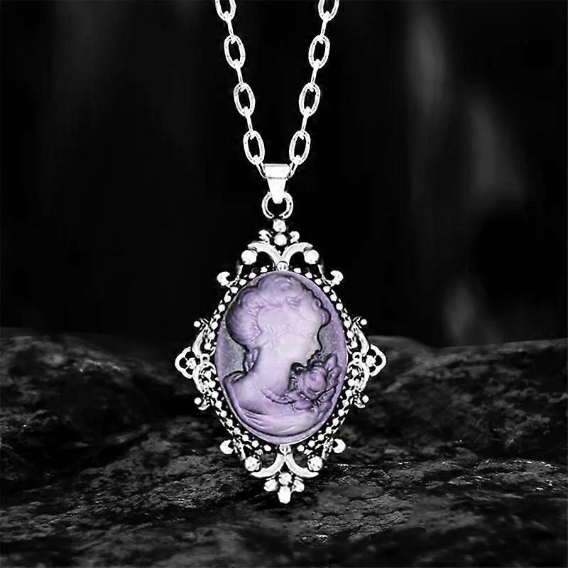 6 Colors Vintage Lady Queen Cameo Necklace For Women Antique Silver Plated Plant Cameo Pendant Stainless Steel Chain Necklace