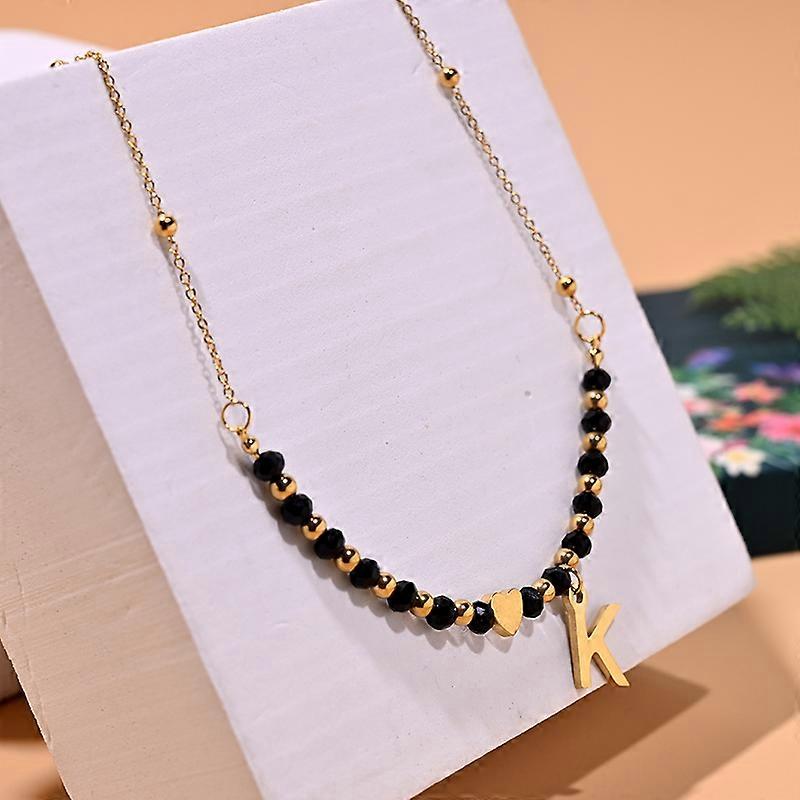 Waterproof Gold Color Stainless Steel Heart Initial Necklace for Women Tarnish Free Faceted Crystal Necklace MOON GIRL Design