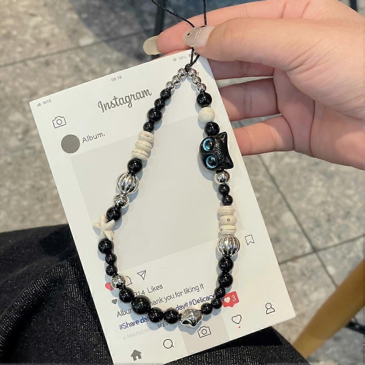 2pcs Mobile For Women HighValue And Sophisticated Black Cat Ccd Camera Keychain Phone Case Strap Accessory Trendy On