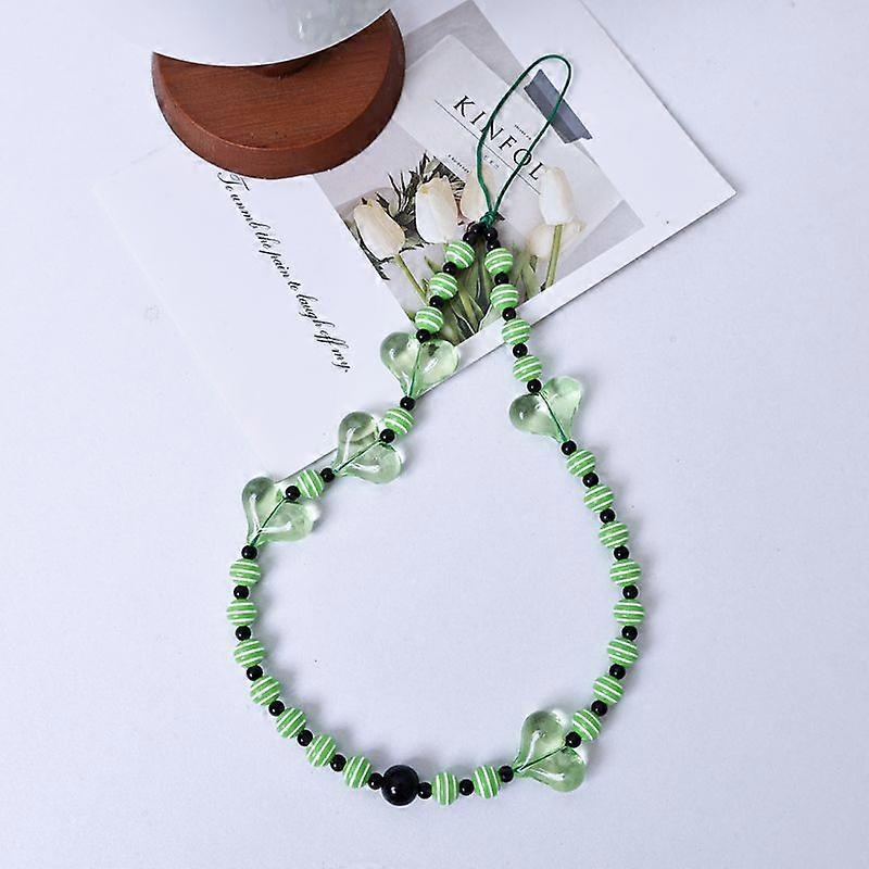 2pcs New Colorful Heart Diy Handmade Striped Beaded Short MobileAntiDrop AntiLost Wrist Strap